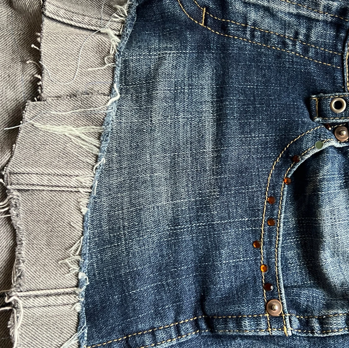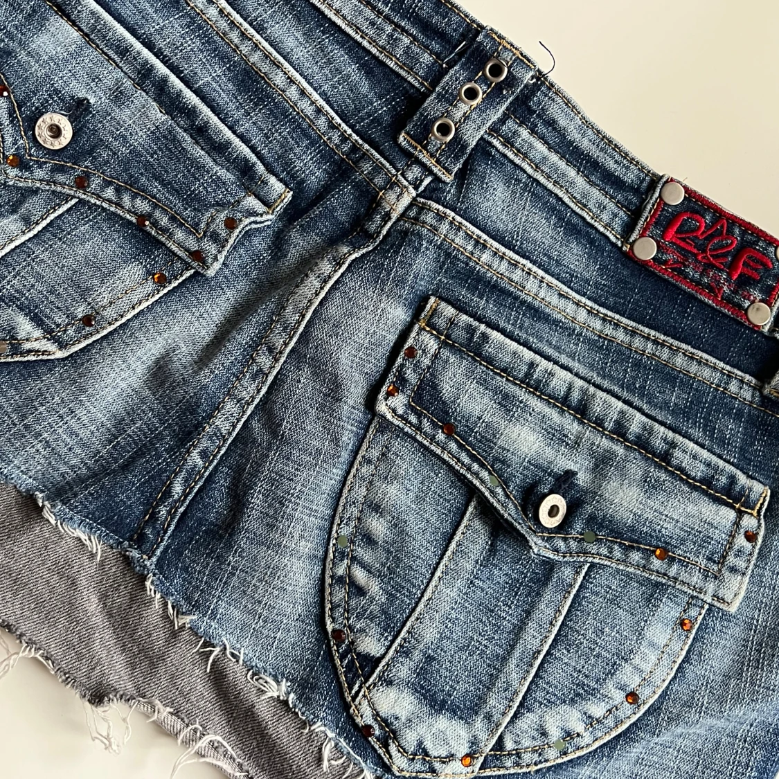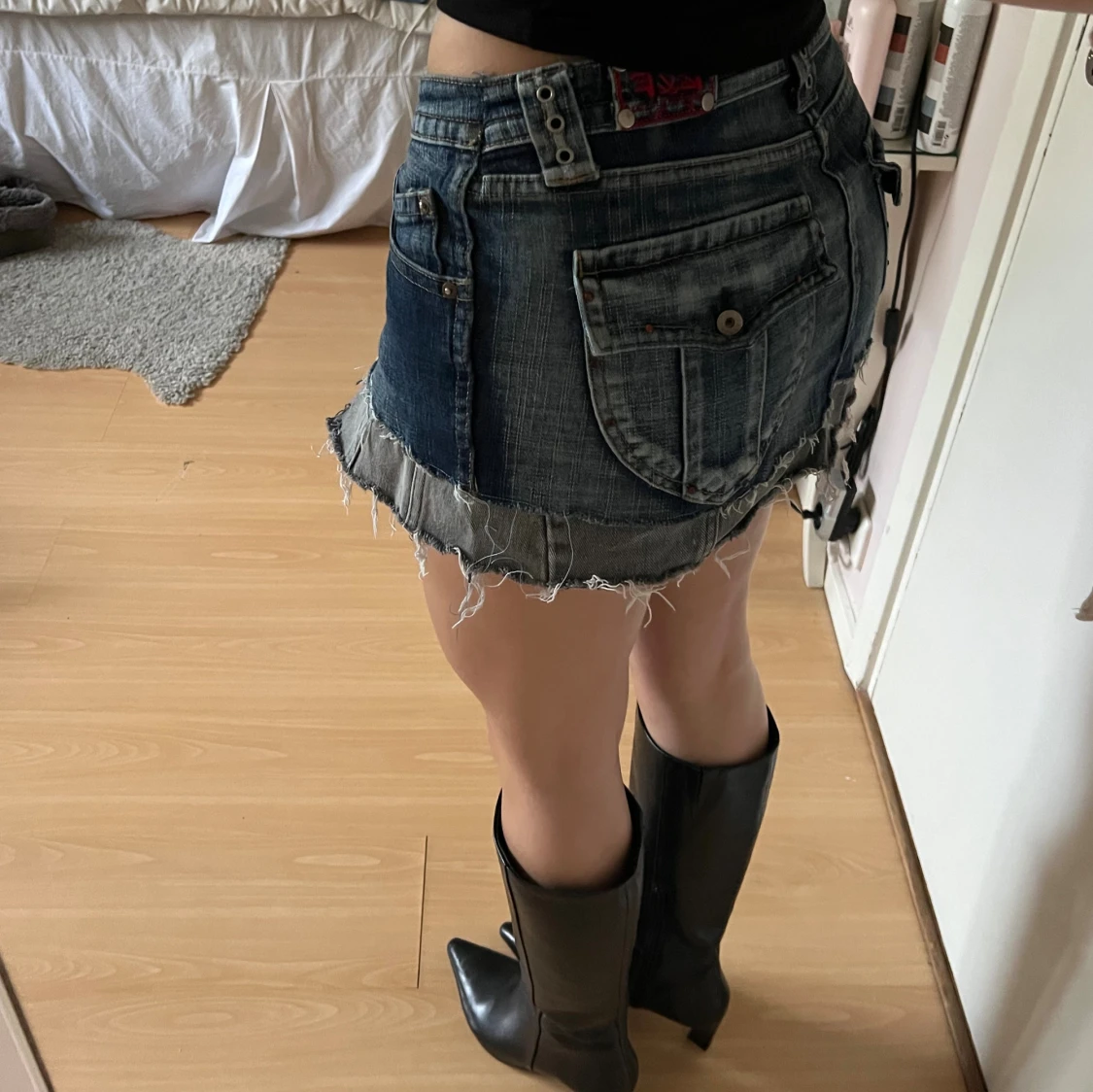 Mini jeanskjol från R&F, med många detaljer. Jag har sytt om den själv från ett par jeans till en kjol. Storlek S, midjemått: ca 41cm rakt över. Skriv om du har frågor! 💕