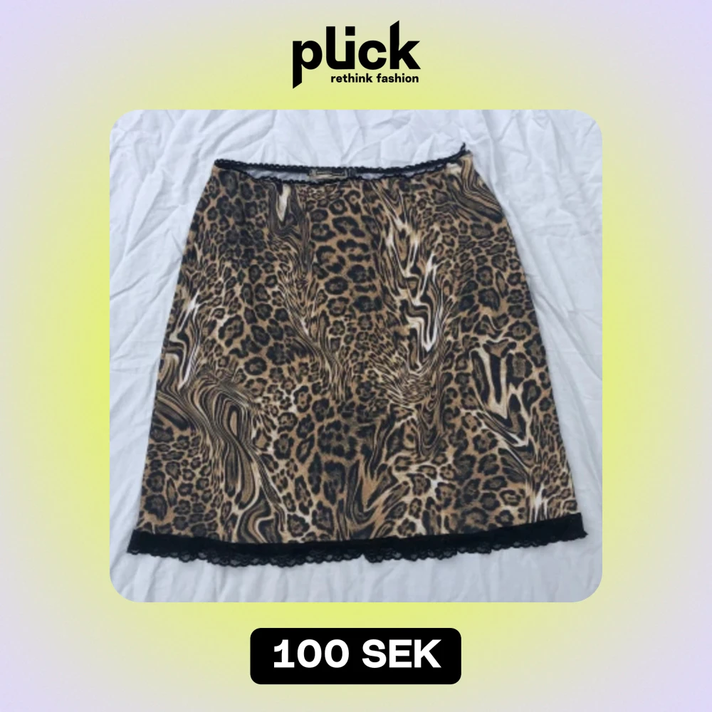 Supersöt kjol i leopardmönster med spets. Stretchig så passar S-L. Har en defekt på midjebandet (se bild 3). Pris kan diskuteras🫶🏼