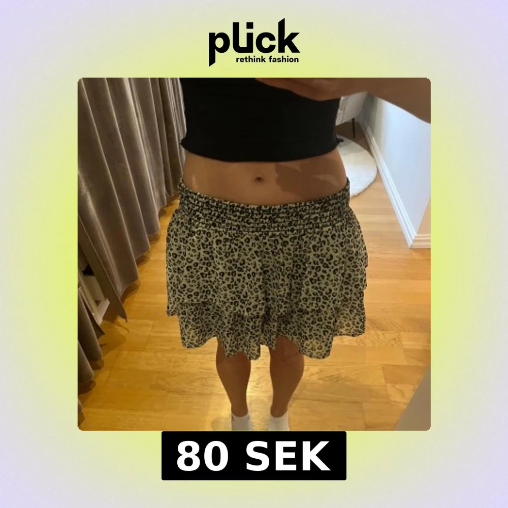 Jag säljer en kort leopard mönstrad kjol som är super snygg och bekväm. Den har flera ”lager” tyg så den ser mer fluffig och fin ut! Man kan välja själv hur man har den, kolla bilderna:) vet ej vad det är för märke men det finns bild på det!