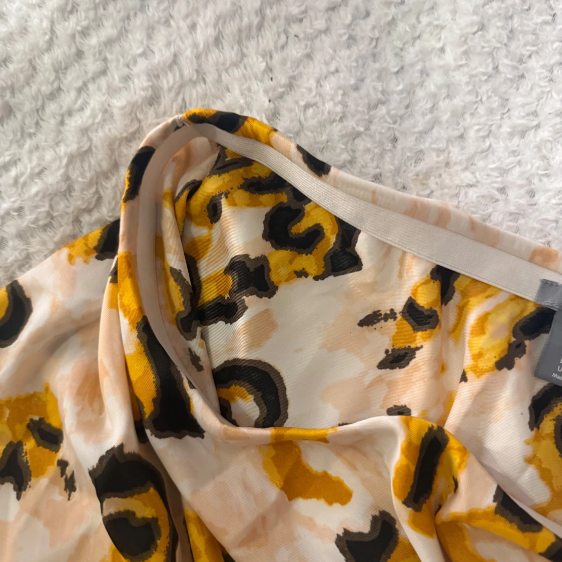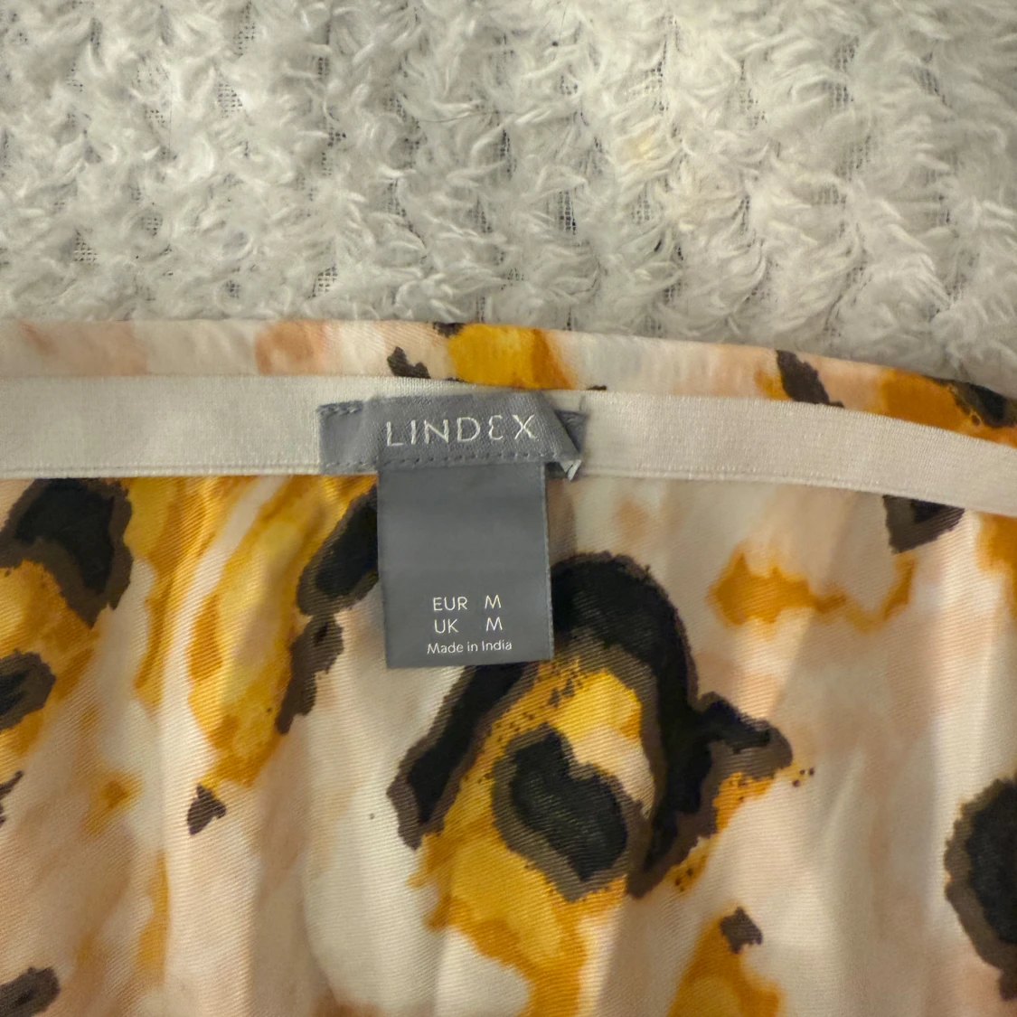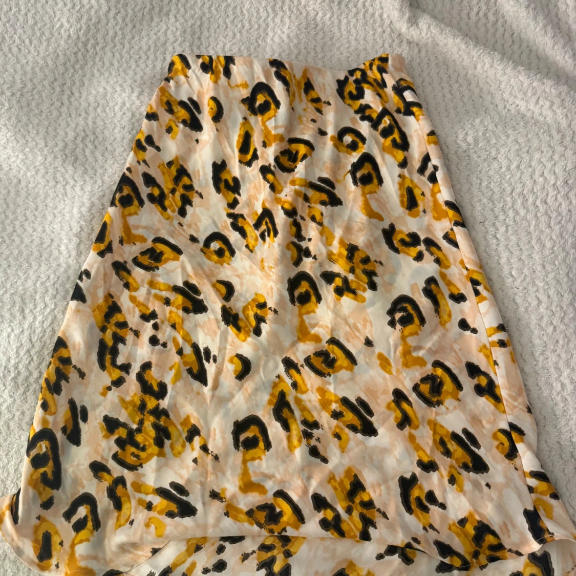 Snygg kortkjol från Lindex med leopardmönster i gult, svart och beige. Kjolen har en rak passform och är gjord i ett lätt och mjukt polyestertyg. Perfekt för dig som vill sticka ut med ett coolt djurmönster.