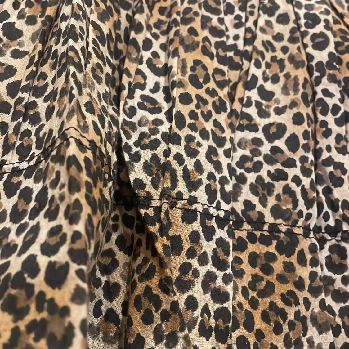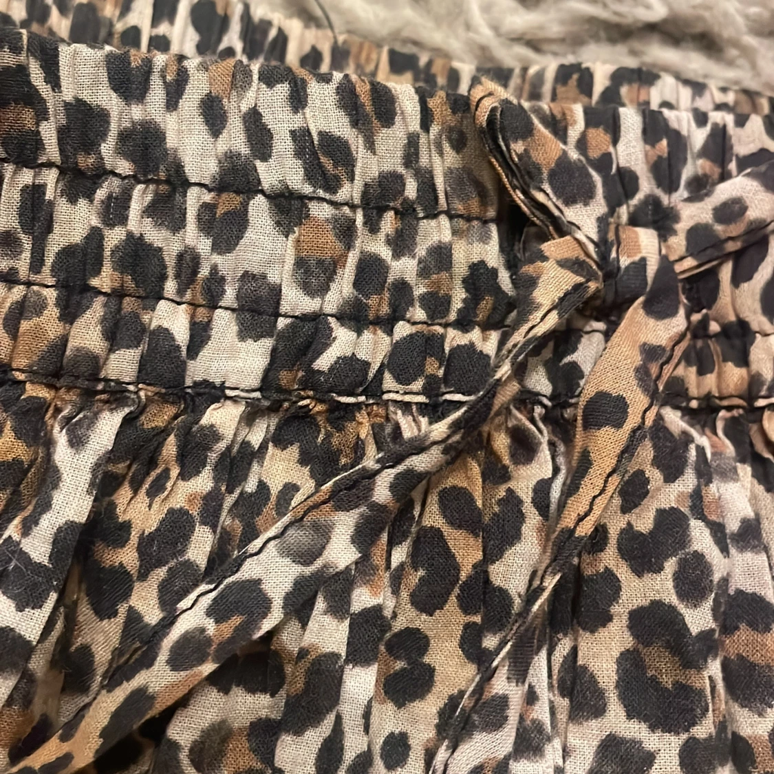 Säljer en snygg leopardmönstrad kjol från Zara med resår i midjan. Kjolen har volanger och är i en luftig modell som passar perfekt för dig som gillar djurmönster. Färgerna går i beige, svart och brunt. Den har shorts under!❤️🌸