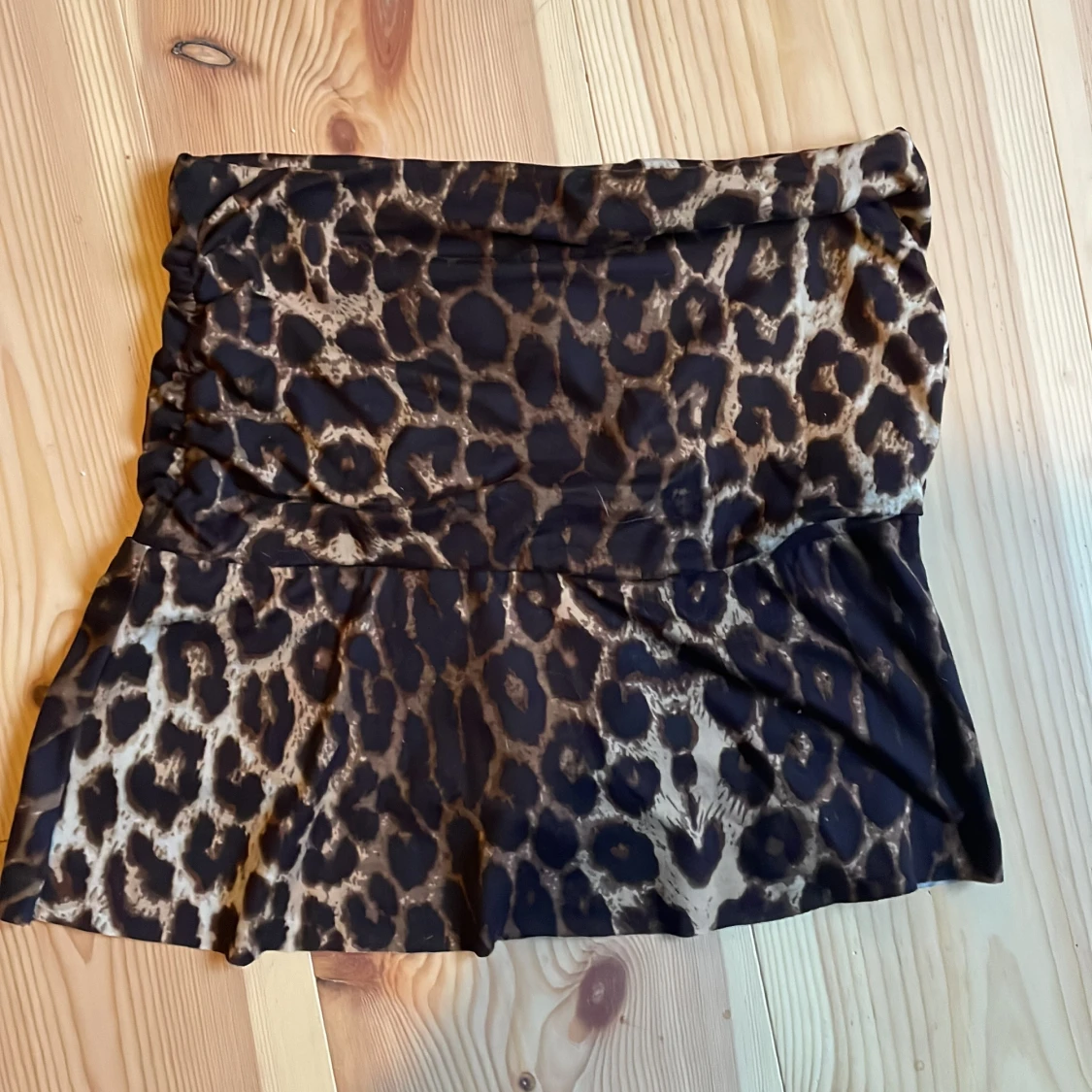 Snygg leopardmönstrad kortkjol med en tight passform. Kjolen har en volangdetalj längst ner som ger en extra touch. Perfekt för att sticka ut med ett djärvt mönster.