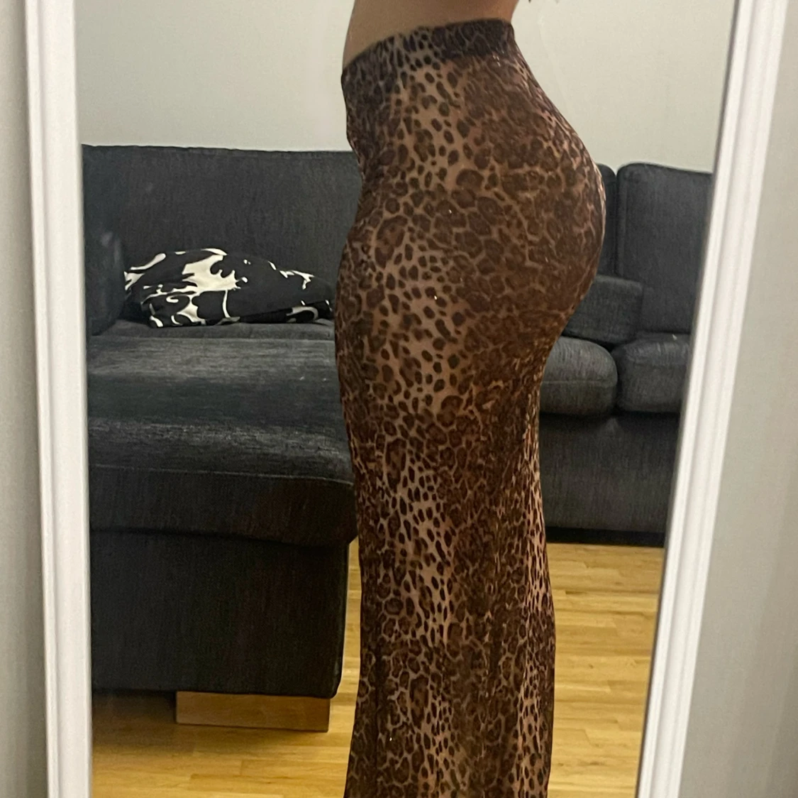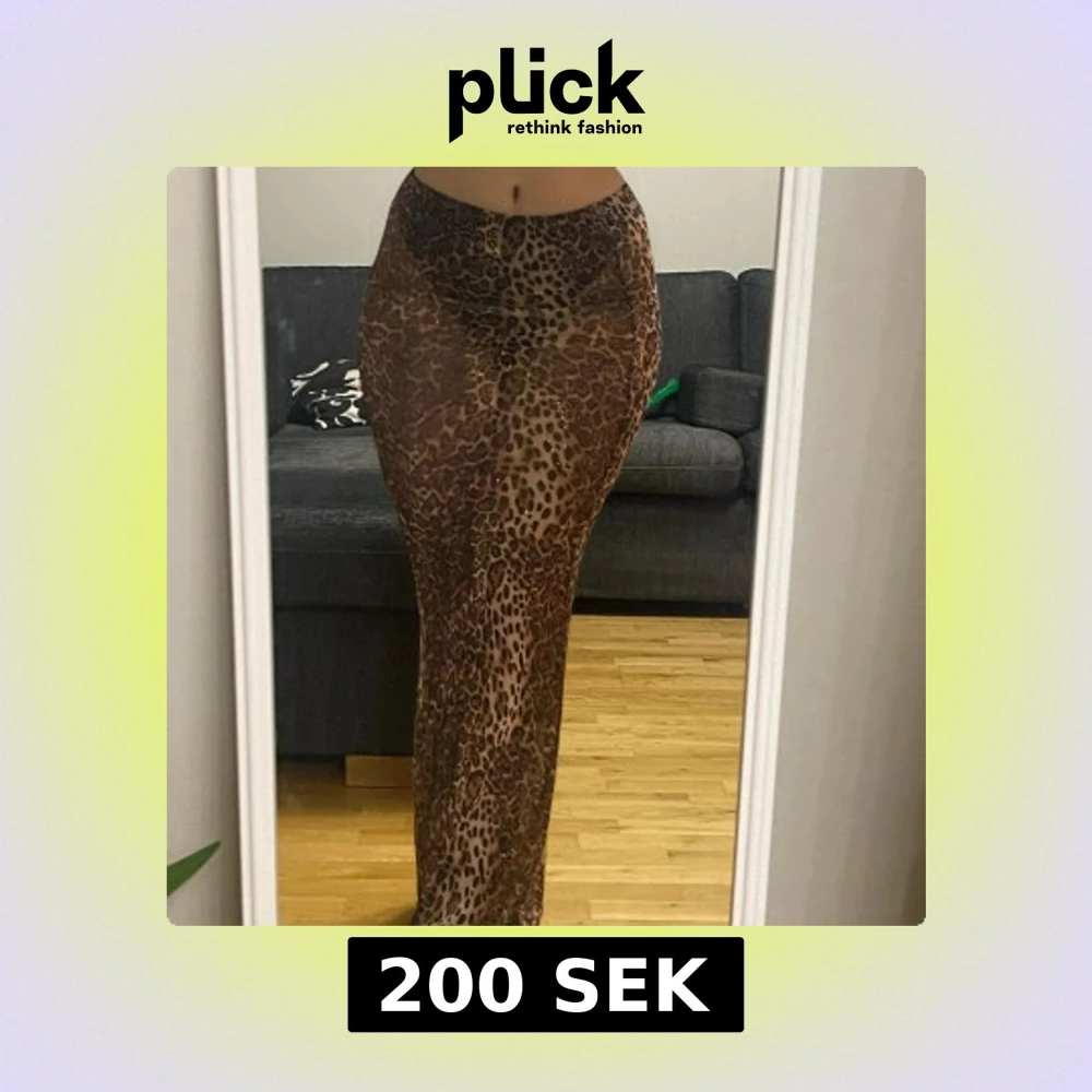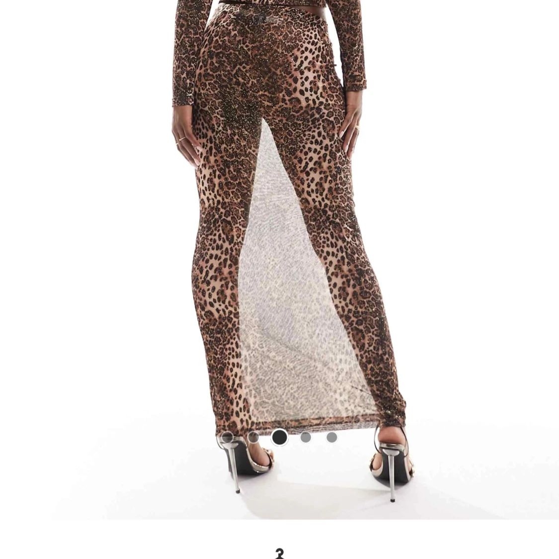 Snygg leopardmönstrad långkjol i ett stretchigt mesh material. Kjolen har en tight passform som framhäver figuren och är perfekt för en djärv look. Den är glittrig och ganska genomskinlig, Den är lätt och bekväm att bära. Vet inte midjemmått men den ǎr elastisk. Köpt i asos