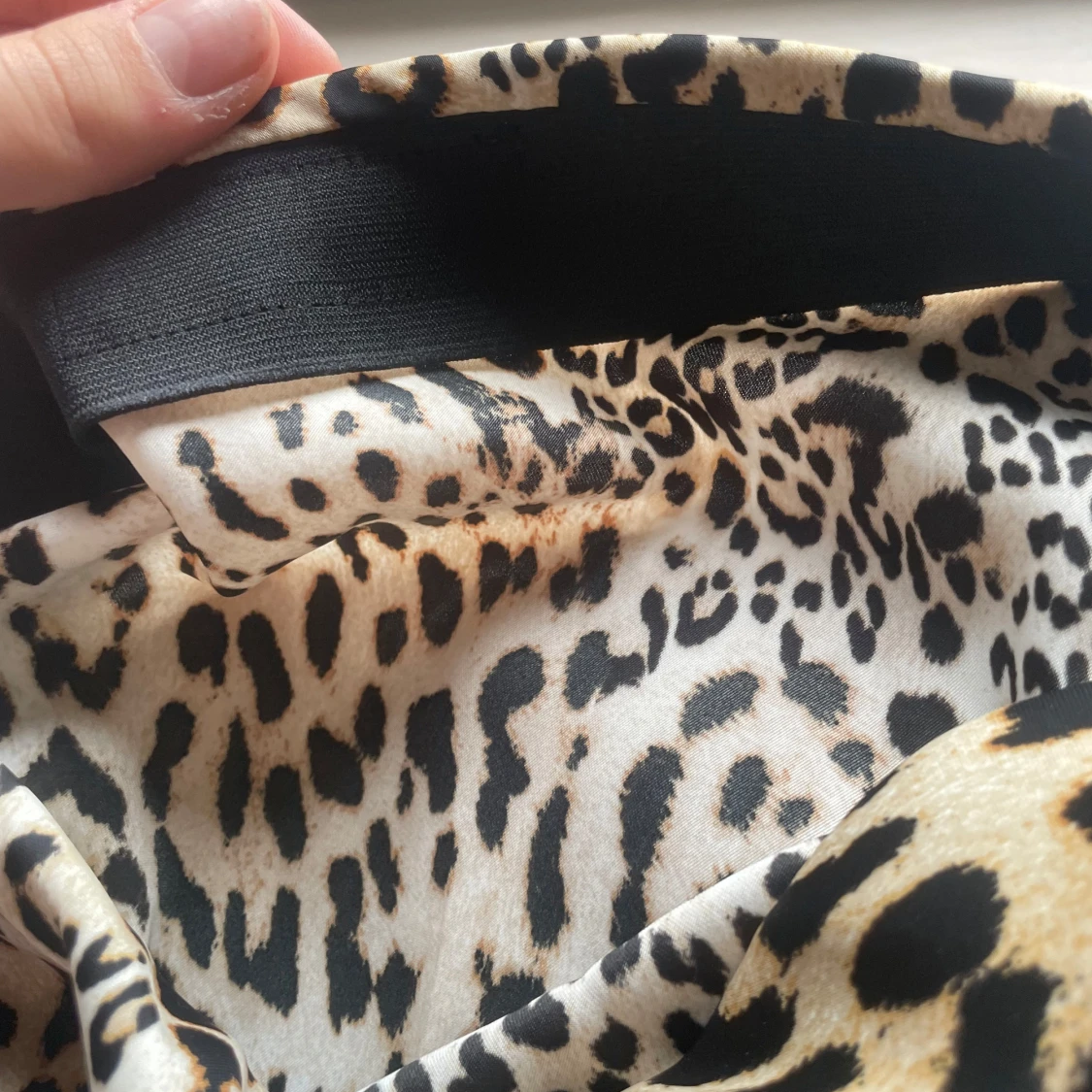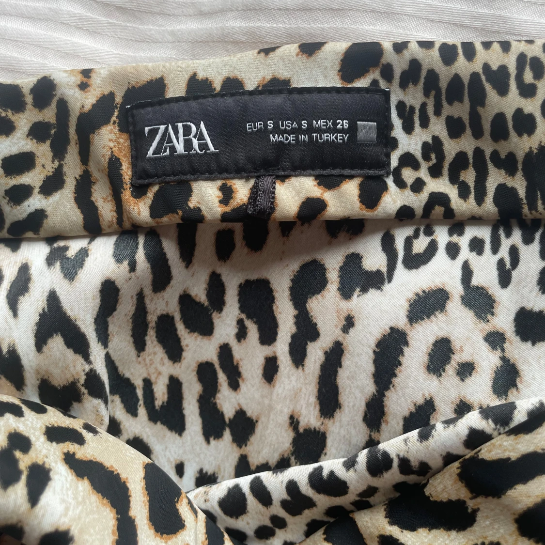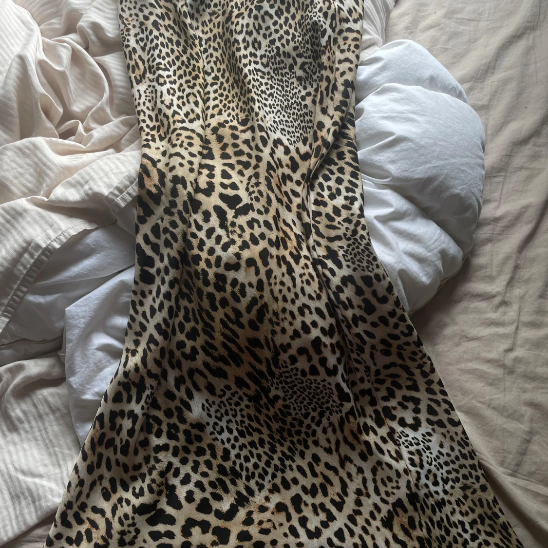 Snygg långkjol från Zara med leopardmönster i beige, svart och bruna toner. Klänningen har en slimmad passform och är tillverkad i ett glansigt, mjukt material som känns lyxigt mot huden. Perfekt för dig som vill sticka ut med ett djurmönster and a glamourrr look! Är som ett gummiband vid midjan
