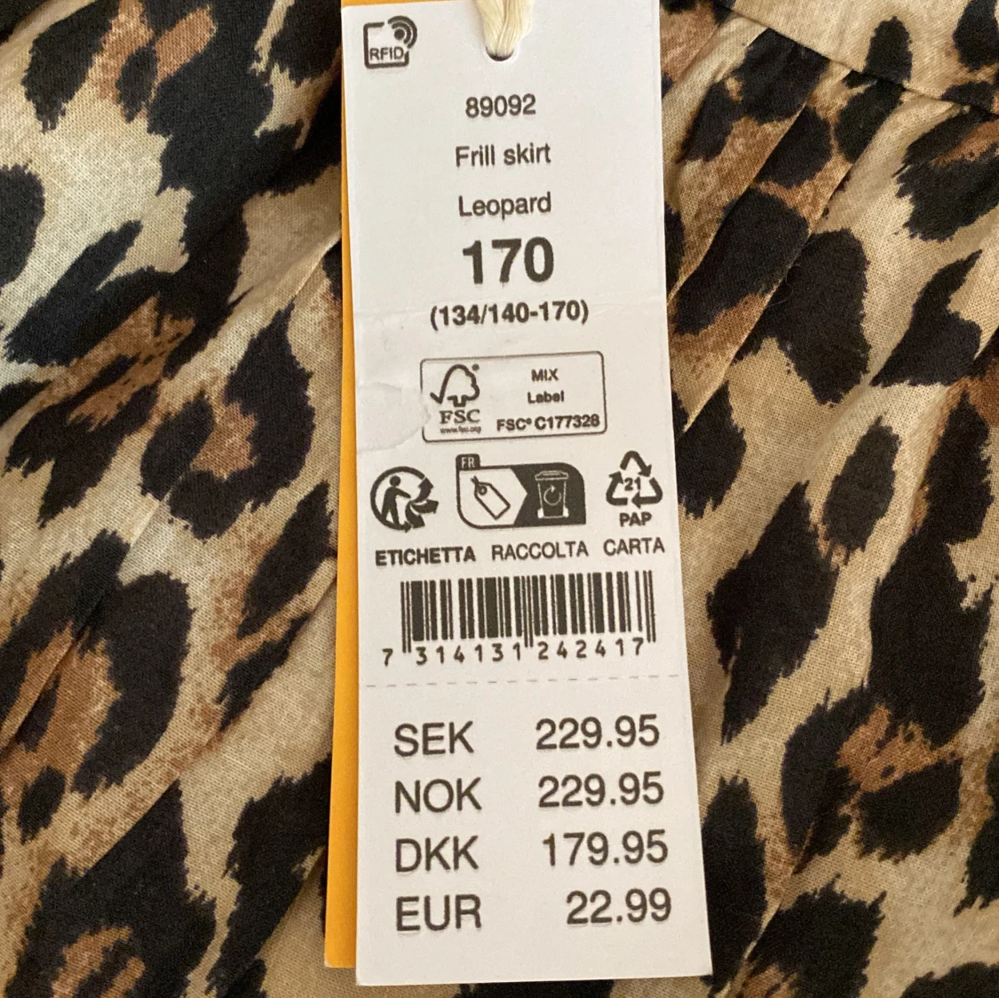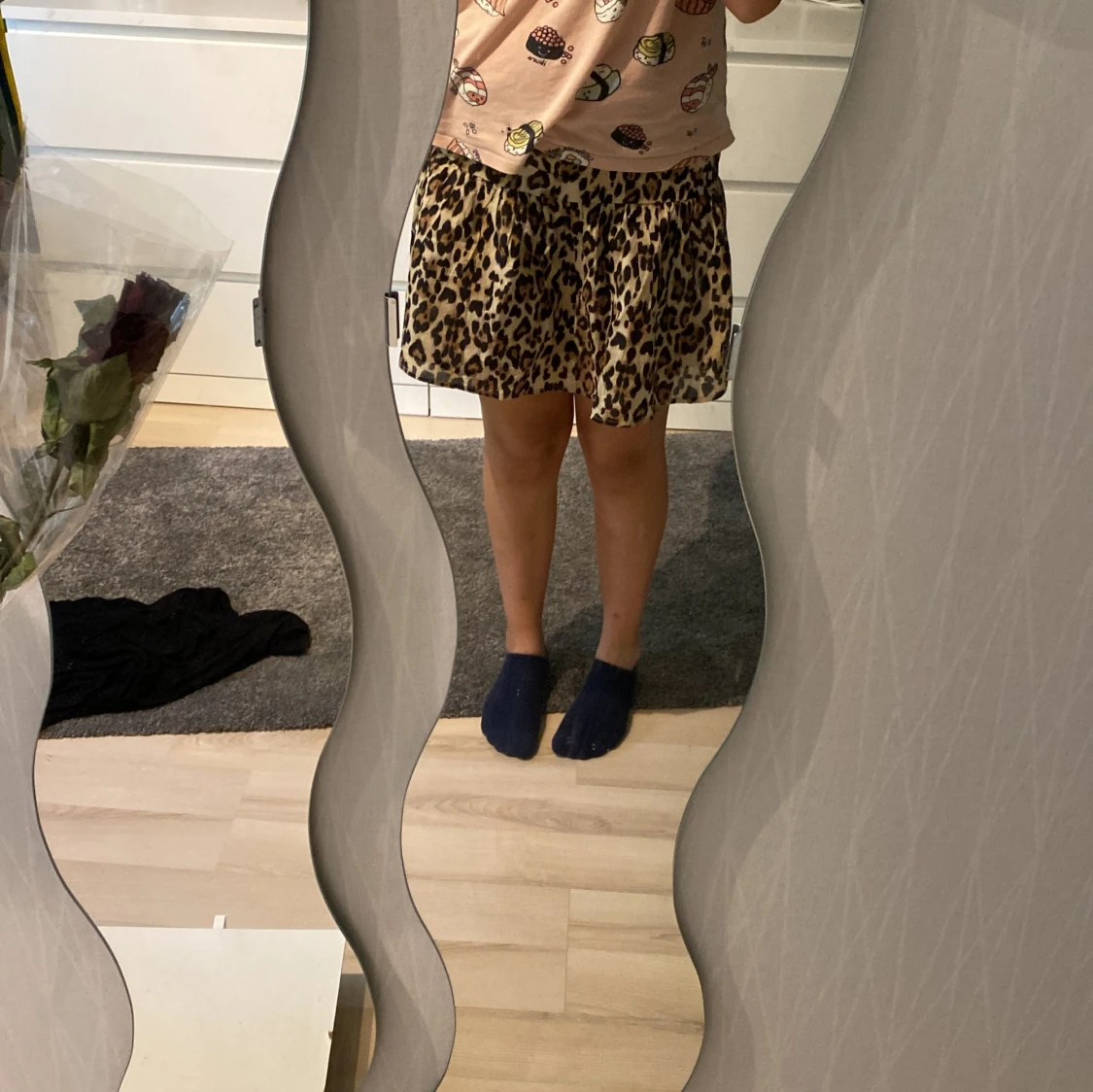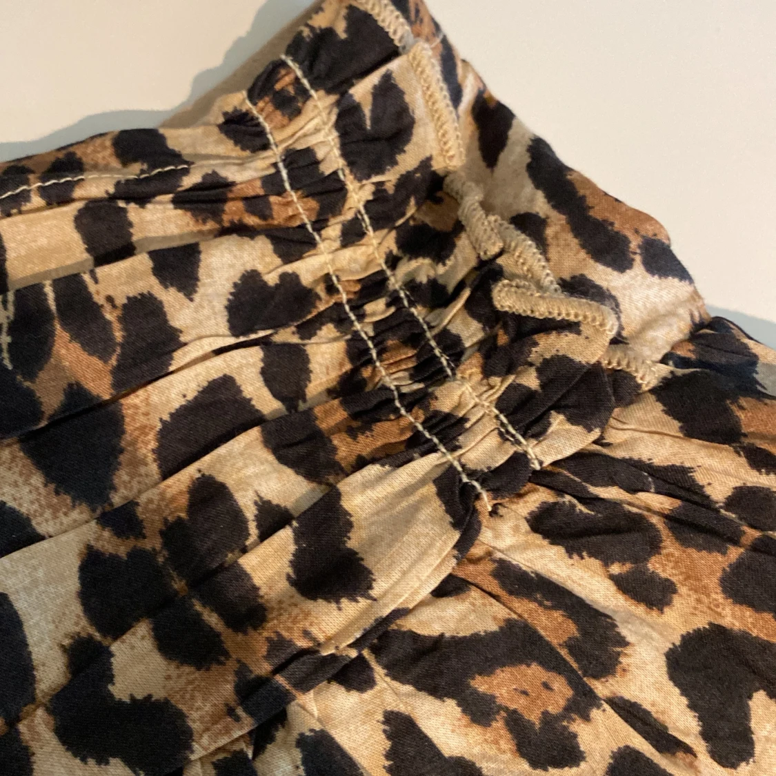 Säljer en kort volangkjol med leopardmönster i beige, brunt och svart. Kjolen har en luftig och flowy passform med resår i midjan för extra komfort. Perfekt för dig som vill sticka ut med en trendig och djärv look.