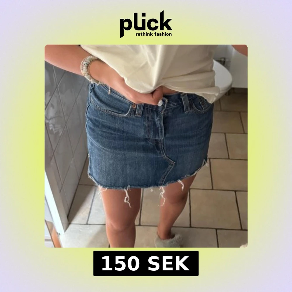 Levi’s jeanskjol med hög midja och slitningar nertill💙stl, W24. Produkten är knappt använd, därav i ny skick! 😇Ny pris 499kr