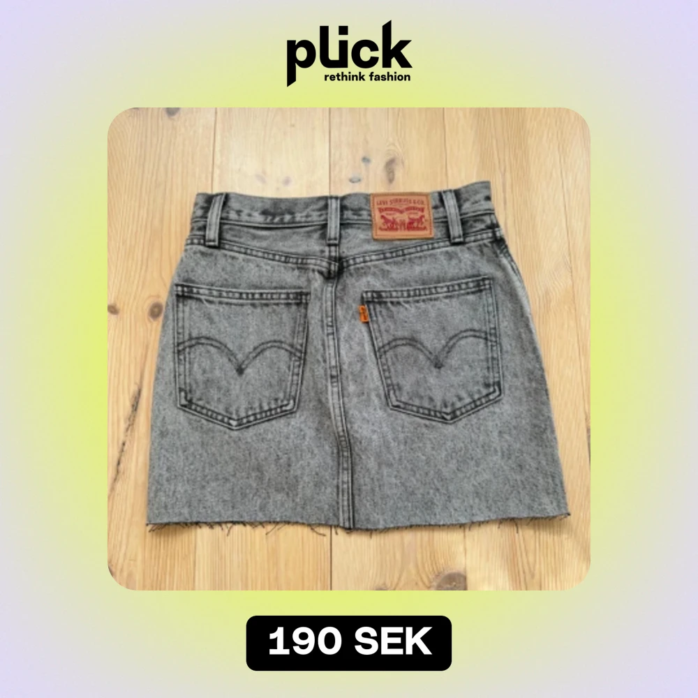 Säljer en grå jeanskjol från Levi's. Den har en rå avklippta kant nertill. Fint skick!
