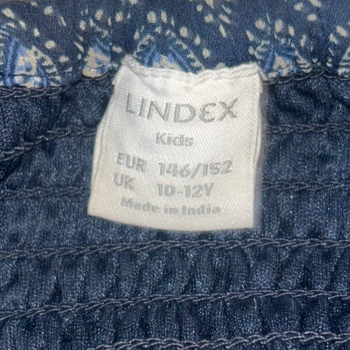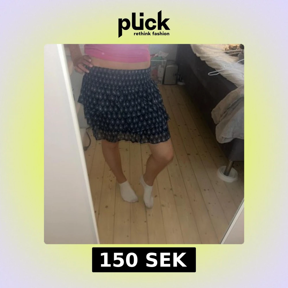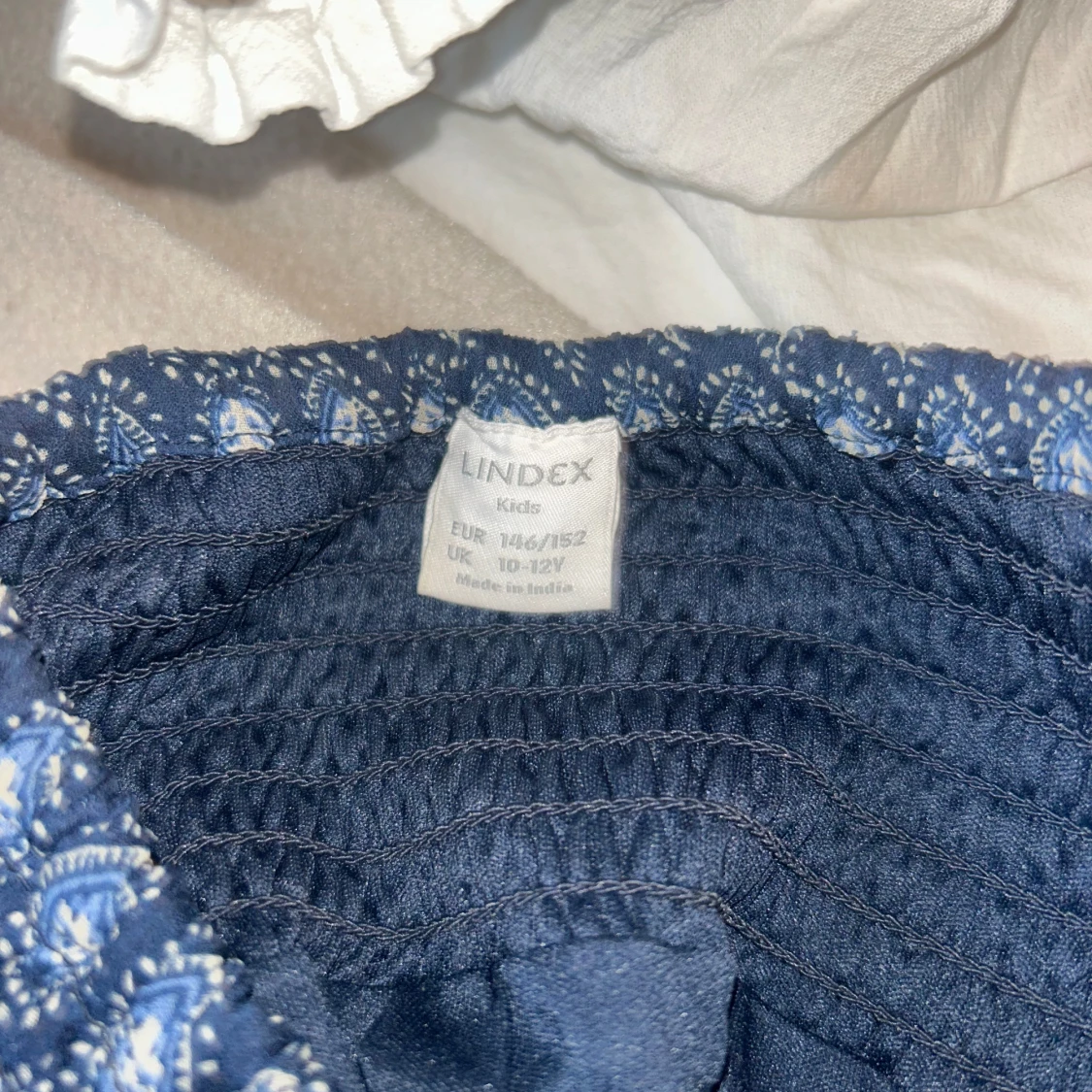 Supersöt blå kortkjol från Lindex med vitt mönster och volanger. Stor i storleken. Kjolen har resår i midjan för skön passform och är perfekt för dig som gillar en luftig och lätt stil. Passar dig som vill ha en chill och snygg look till sommaren.