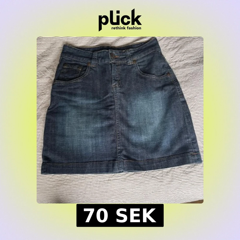 Snygg mörkblå jeanskjol från Lindex storlek 36. Kjolen är i stretchig denim med 98% bomull och 2% elastan. Toppskick.