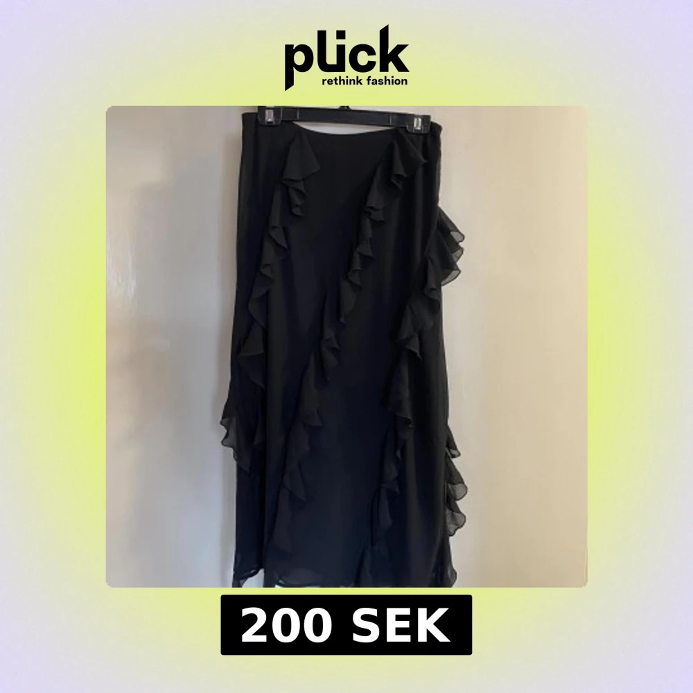 En superfin långkjol från Lindex i storlek 38 ❣️ Den sitter perfekt i längden på mig som är strax över 170 cm lång. Skulle säga att det är en medelhög/låg midja. Kjolen har en slits och en förslutning med dragkedja vid sidan om höften. Var jättenöjd när jag köpte den men det blev att jag aldrig använde den.