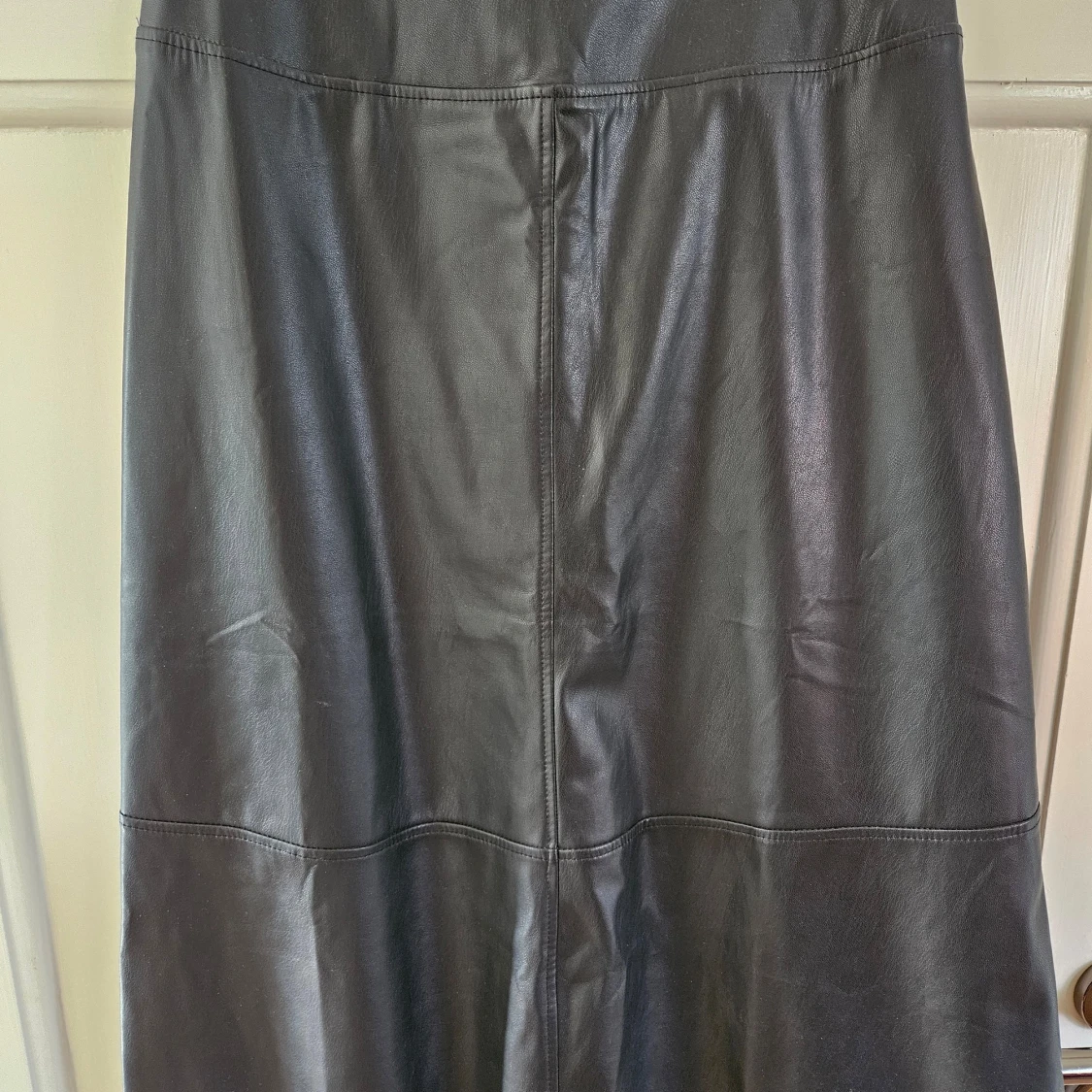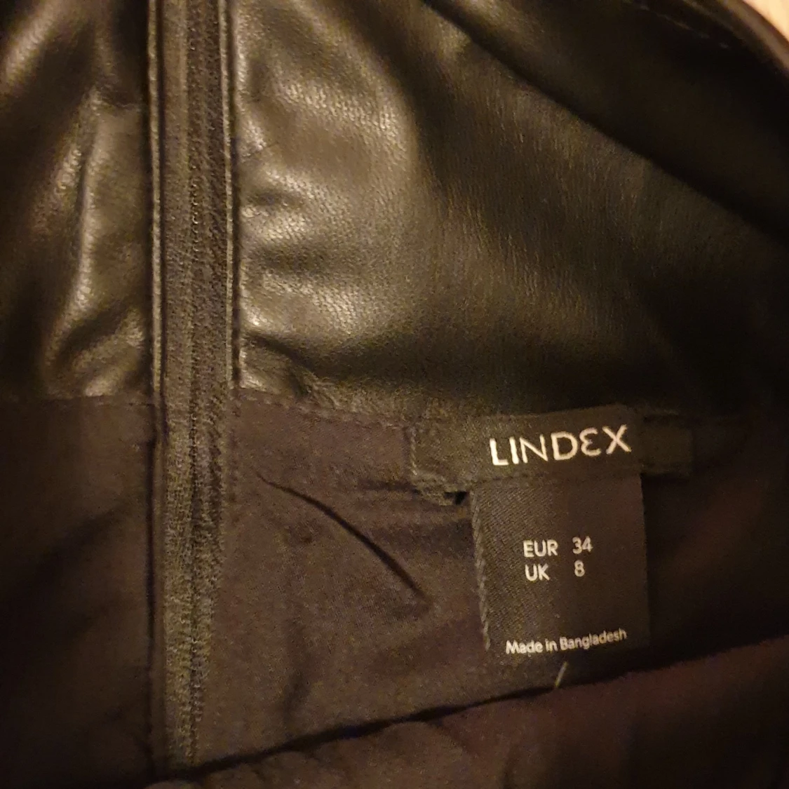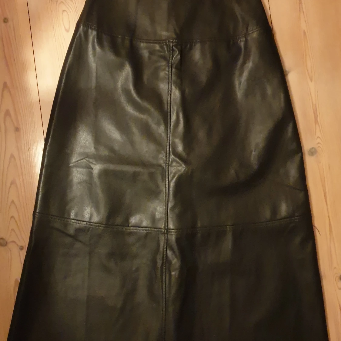 Snygg svart långkjol i skinnimitation från Lindex. Kjolen har en stilren design med sömmar som ger en elegant touch. Perfekt för att skapa en chic look.