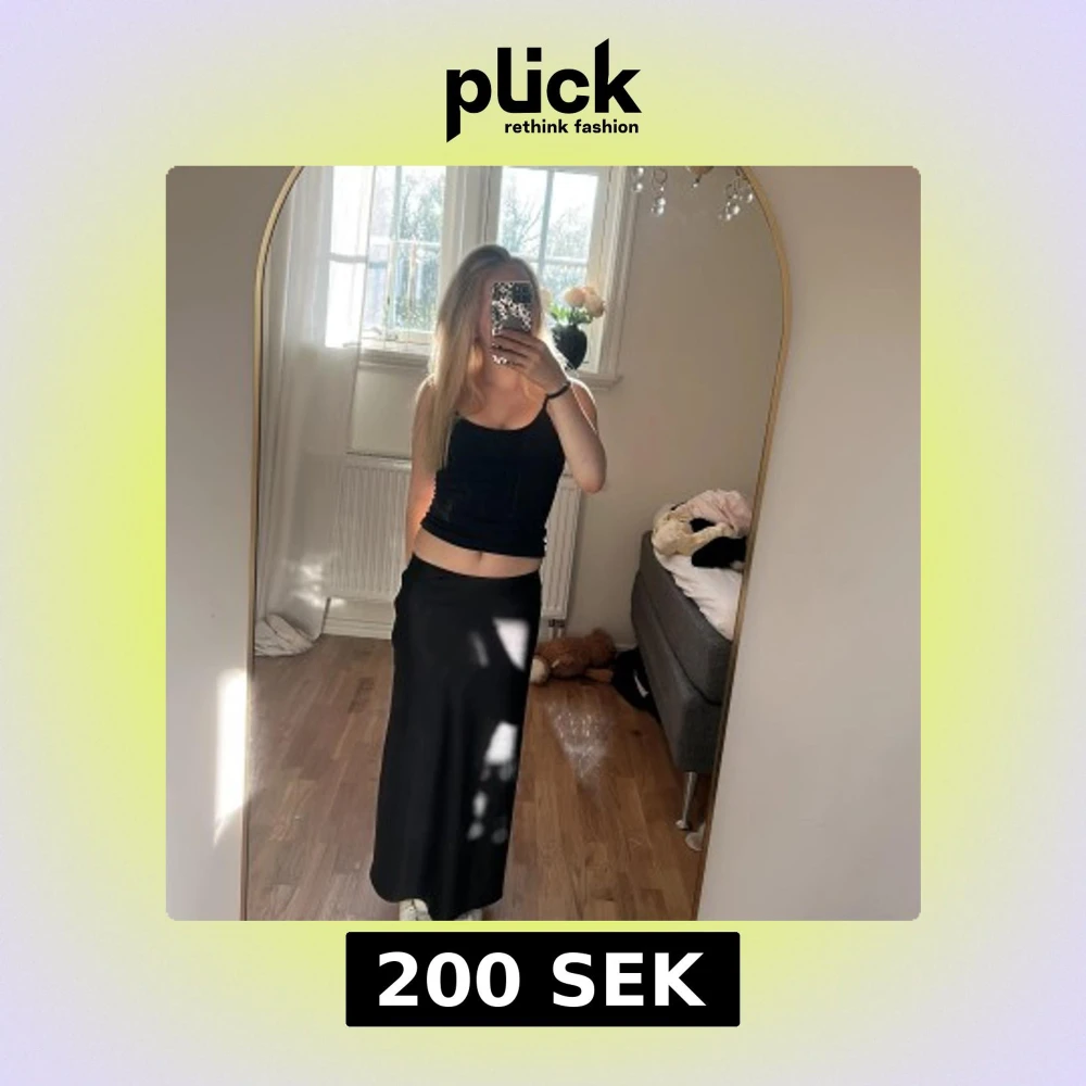 Säljer en svart långkjol från Lindex i storlek xs. Kjolen har en diskret dragkedja i sidan.
