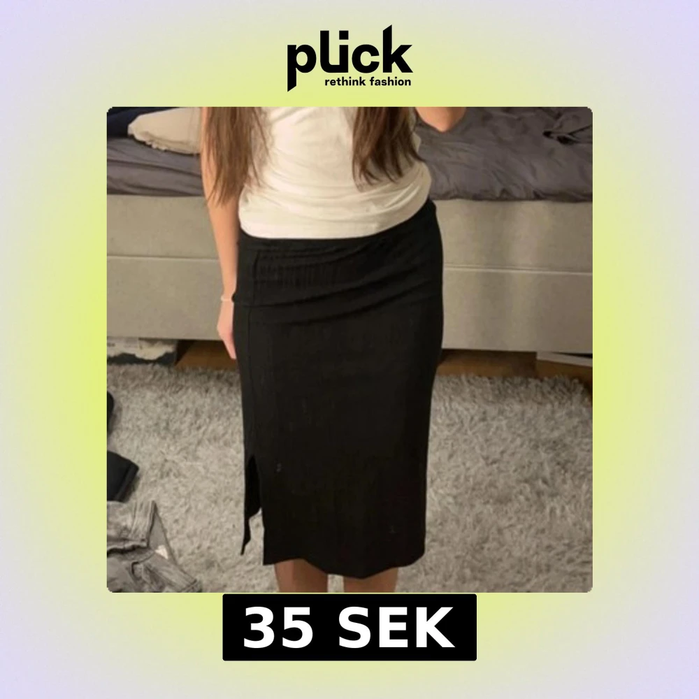 Snygg svart kjol från Lindex med en stilren design. Kjolen har en slits på sidan som ger en extra touch. Perfekt för olika tillfällen och lätt att matcha med olika toppar.