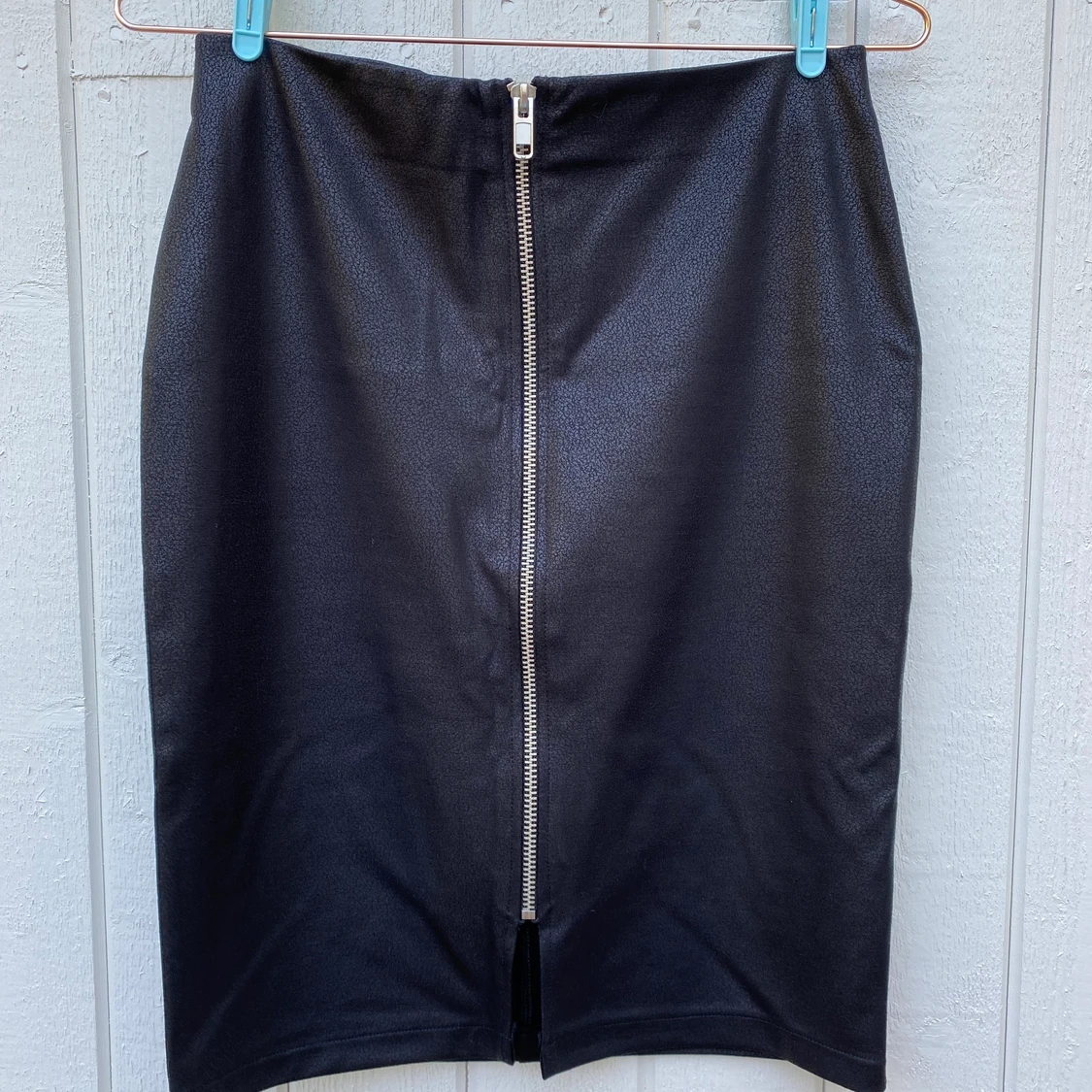 Svart tight knälång kjol i läderimitation.