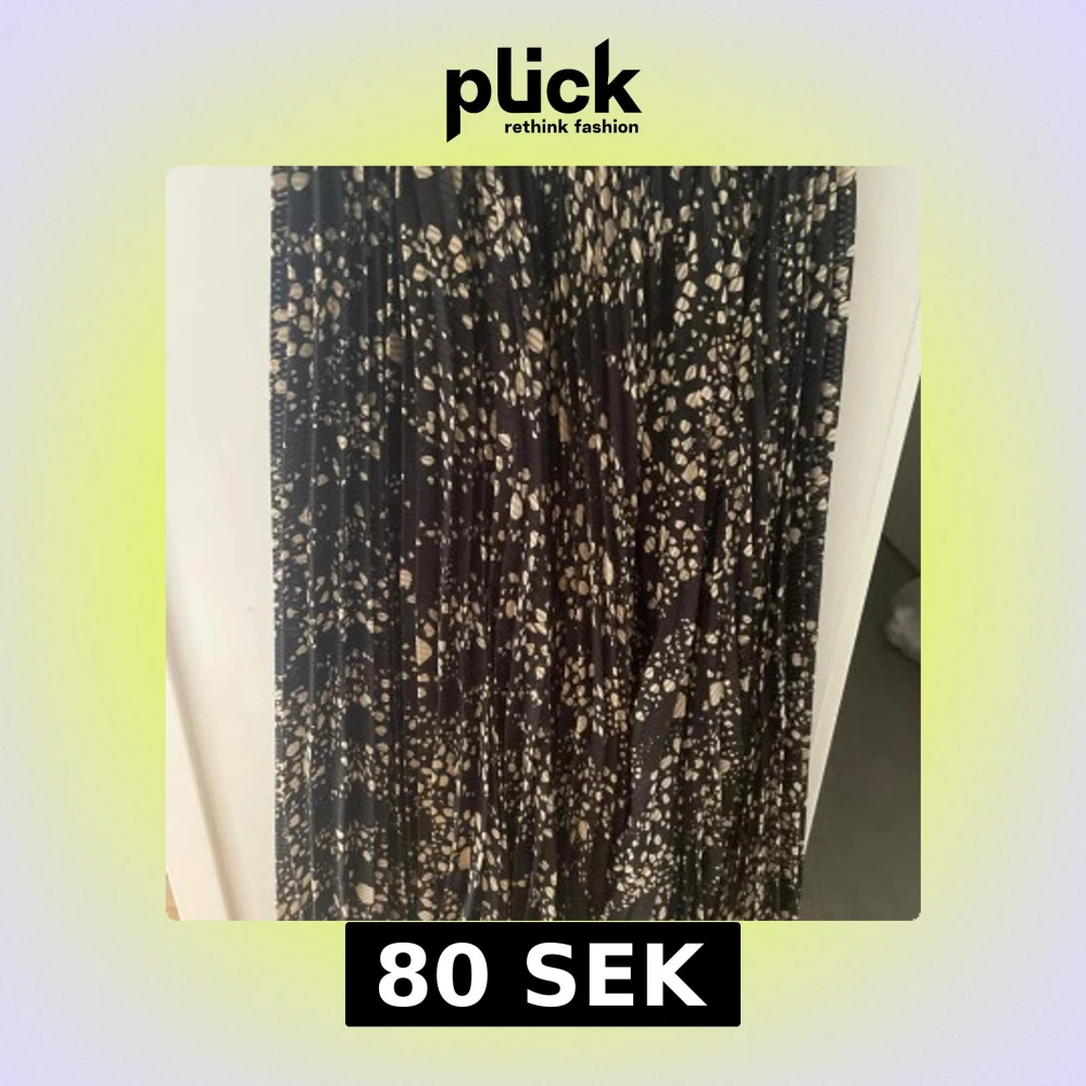 Säljer en svart långkjol med beige prickigt mönster och plisserad design. Kjolen har en flowy känsla och passar perfekt till sneakers eller boots. Resår i midjan för skön passform. Superenkel att styla till olika looks.