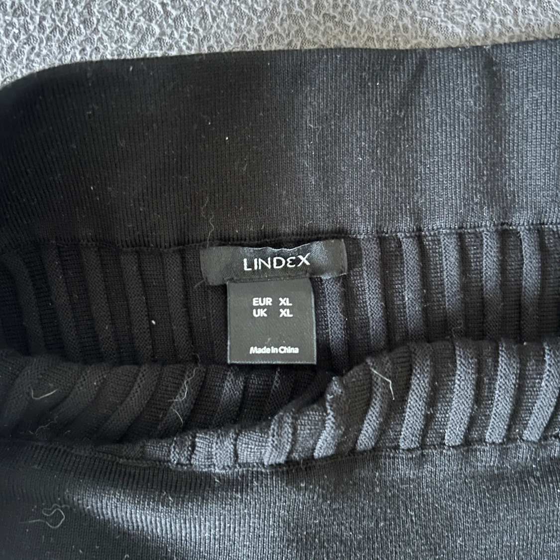 Svart långkjol från Lindex i storlek XL. Kjolen är ribbad med smala vertikala ränder och har en elastisk midja för skön passform. Perfekt för dig som gillar en stilren och enkel look.