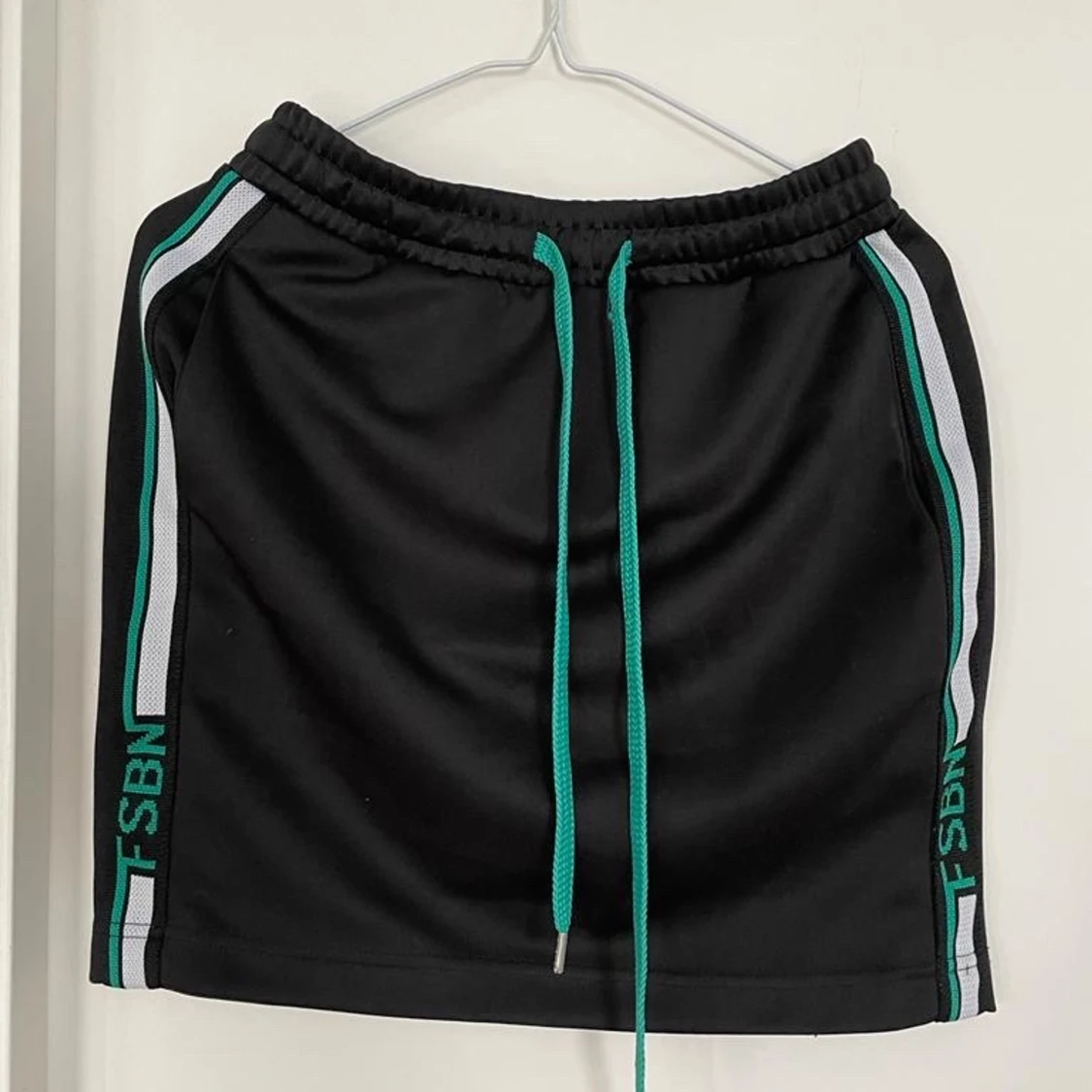 Använd två gånger. Har fickor. Justerbar midja. Gröna och vita detaljer. Köparen står för frakt.
