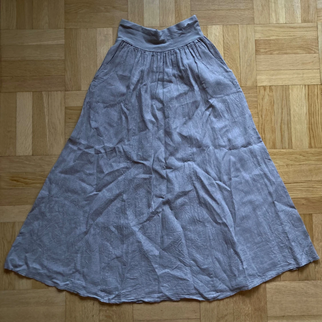 Lång grå linnekjol med resår i midjan och fickor!!!