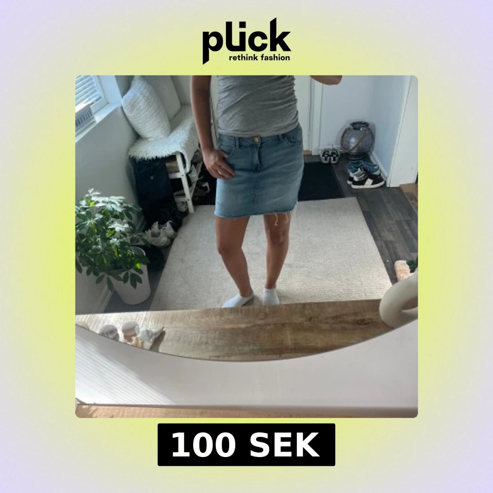Säljer en ljusblå jeanskjol med klassisk femficksdesign och rå, fransad kant nedtill. Kjolen har knapp och dragkedja framtill och är i en kort modell som passar perfekt till sneakers eller sandaler. Enkel och snygg för dig som gillar denim. I barnstolen man passar ungefär storlek xs