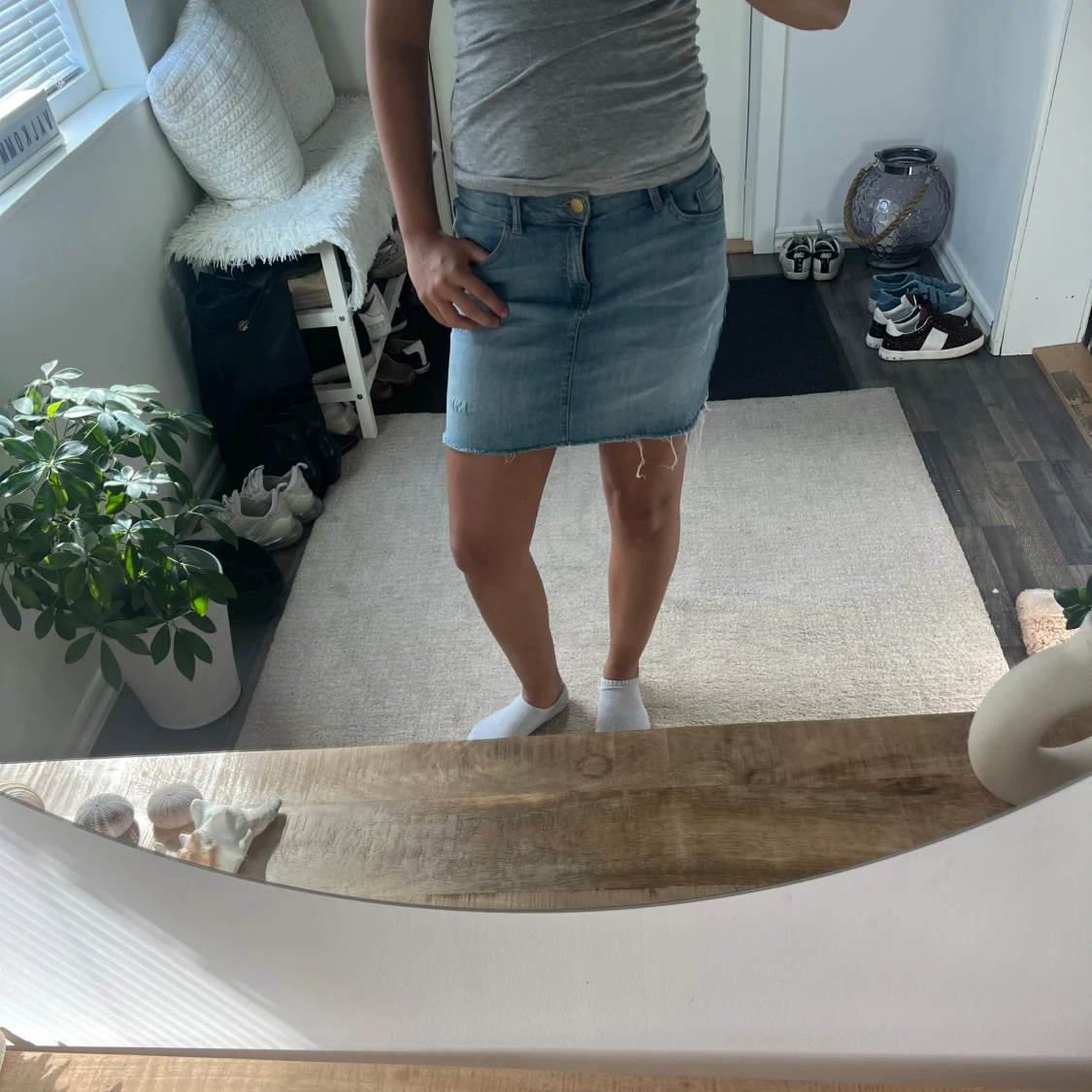 Ljusblå jeanskjol med rå kant