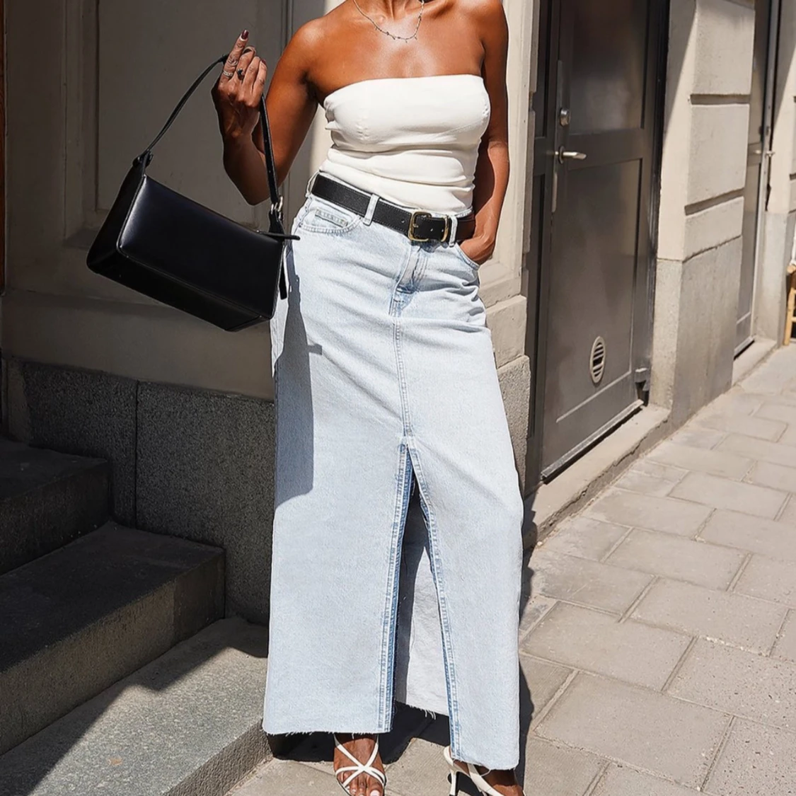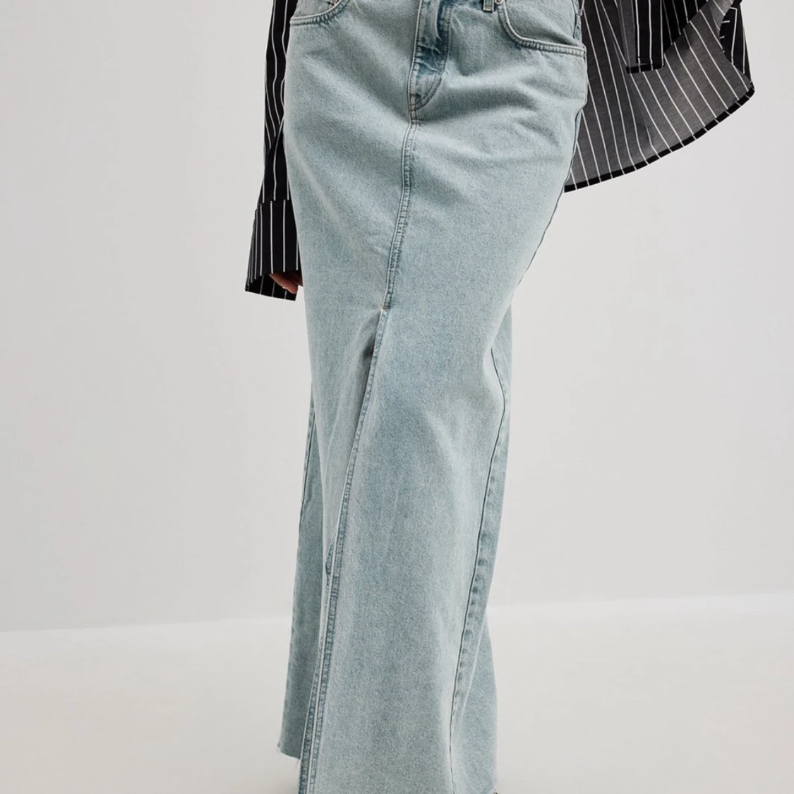 Ljusblå jeanskjol i storlek 34 och är helt oanvänd med prislapp💗från NA-KD