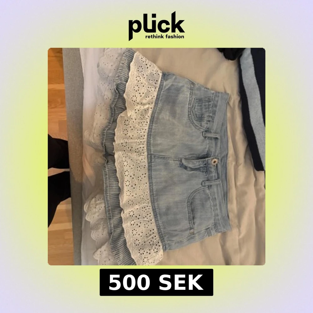Supersöt ljusblå jeanskjol med volanger i vitt och broderad spets. Kjolen har klassiska jeansdetaljer som fickor och bälteshällor, och volangerna ger en romantisk och lekfull vibe. Perfekt för dig som vill sticka ut med en unik och feminin stil. kjolen är i storlek 164 men jag som är en xs/s kan ha den utan problem!!