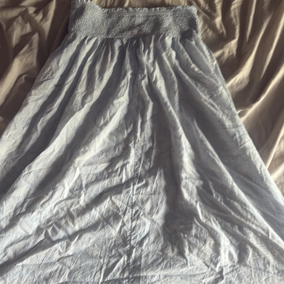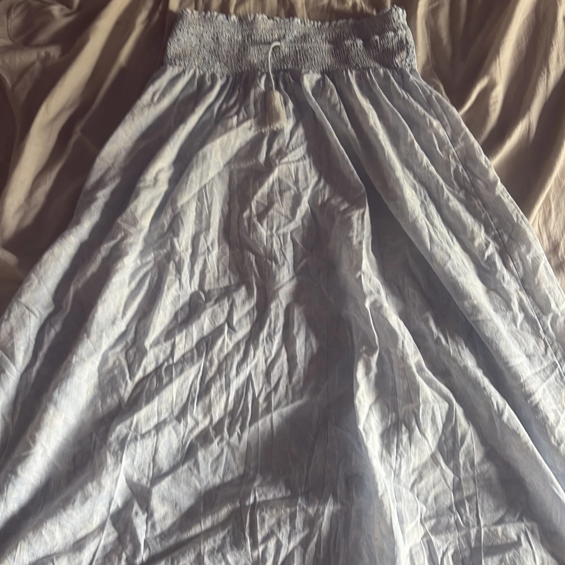Supersöt ljusblå långkjol från Gina Tricot med smockad midja och lätt, flowigt tyg. Kjolen har en enkel och stilren look som passar perfekt till sneakers eller sandaler. Den är luftig och har en mjuk känsla, perfekt för varmare dagar.
