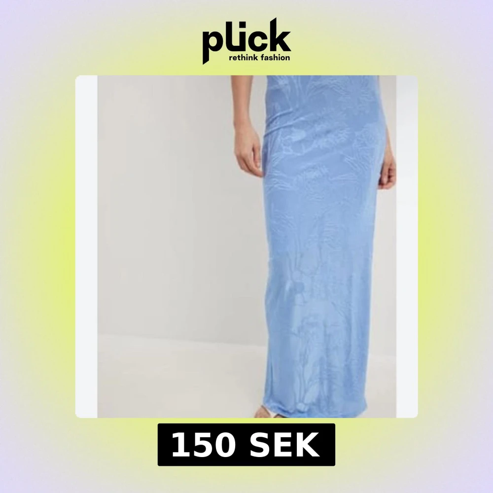 Säljer en ljusblå långkjol med subtilt blommönster. Kjolen har en slits bak och är figurnära i modellen. Perfekt för dig som gillar en feminin och stilren look.