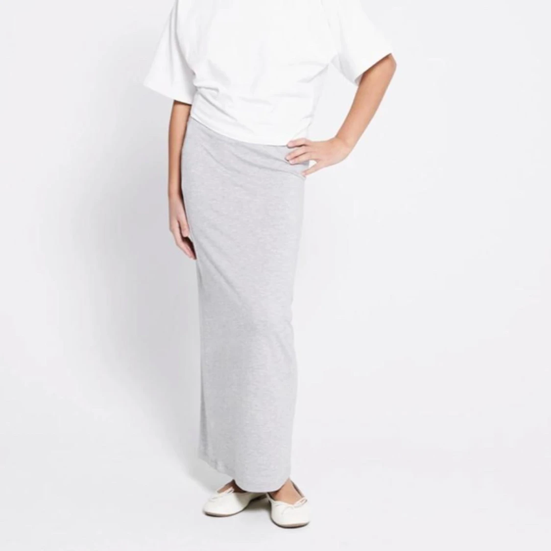 Enkel och stilren ljusgrå långkjol i mjuk bomull. Kjolen har rak passform och resår i midjan för en bekväm känsla. Perfekt för en chill och avslappnad look. Är från lager 157💞