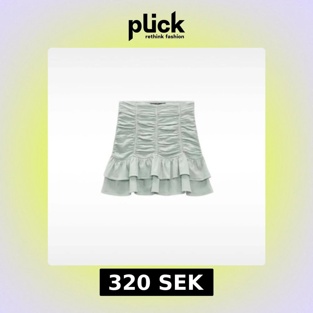 Supersöt ljusgrön/mint färgad kortkjol med volanger och rynkade detaljer framtill. Kolla gärna in mina andra annonser!🩷🩷