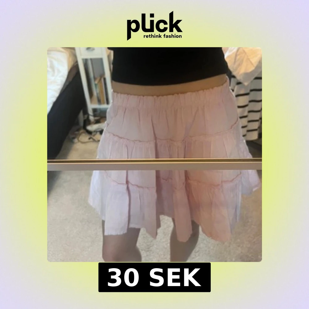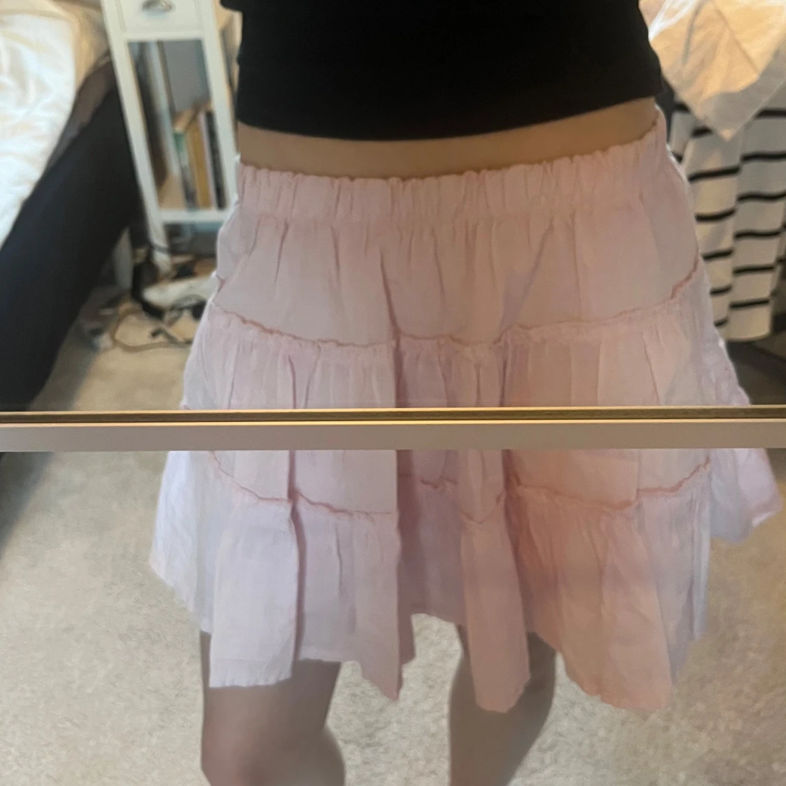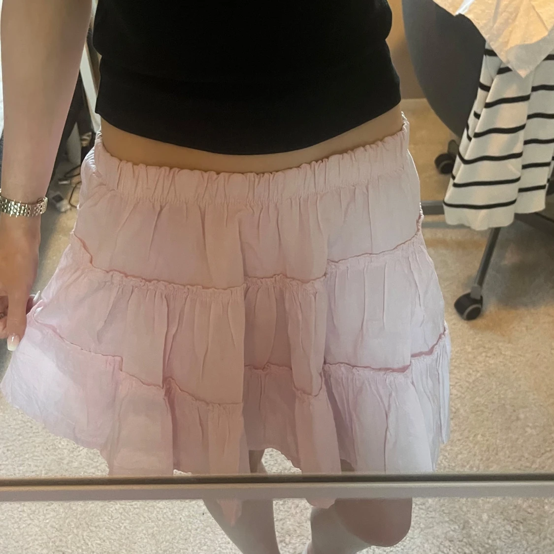 Söt ljusrosa kjol med flera volanger och resår i midjan. Kjolen är kort och har en luftig känsla, perfekt för varmare dagar. Passar dig som gillar en feminin och lekfull stil.