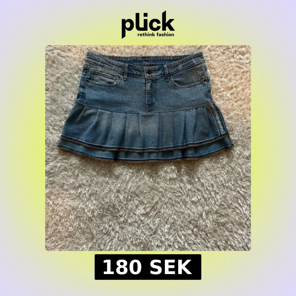 En jeanskjol omsydd från ett par jeans. Midjemått tvärsöver - ca 32cm stretchig Längd - 35cm