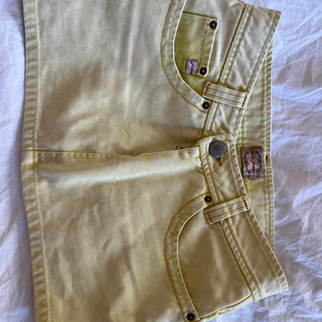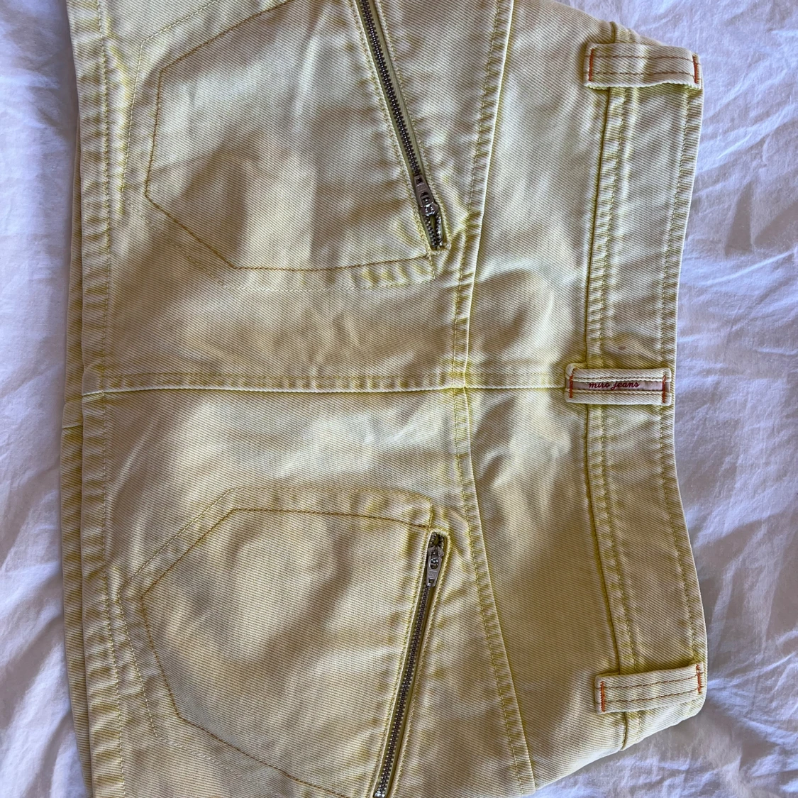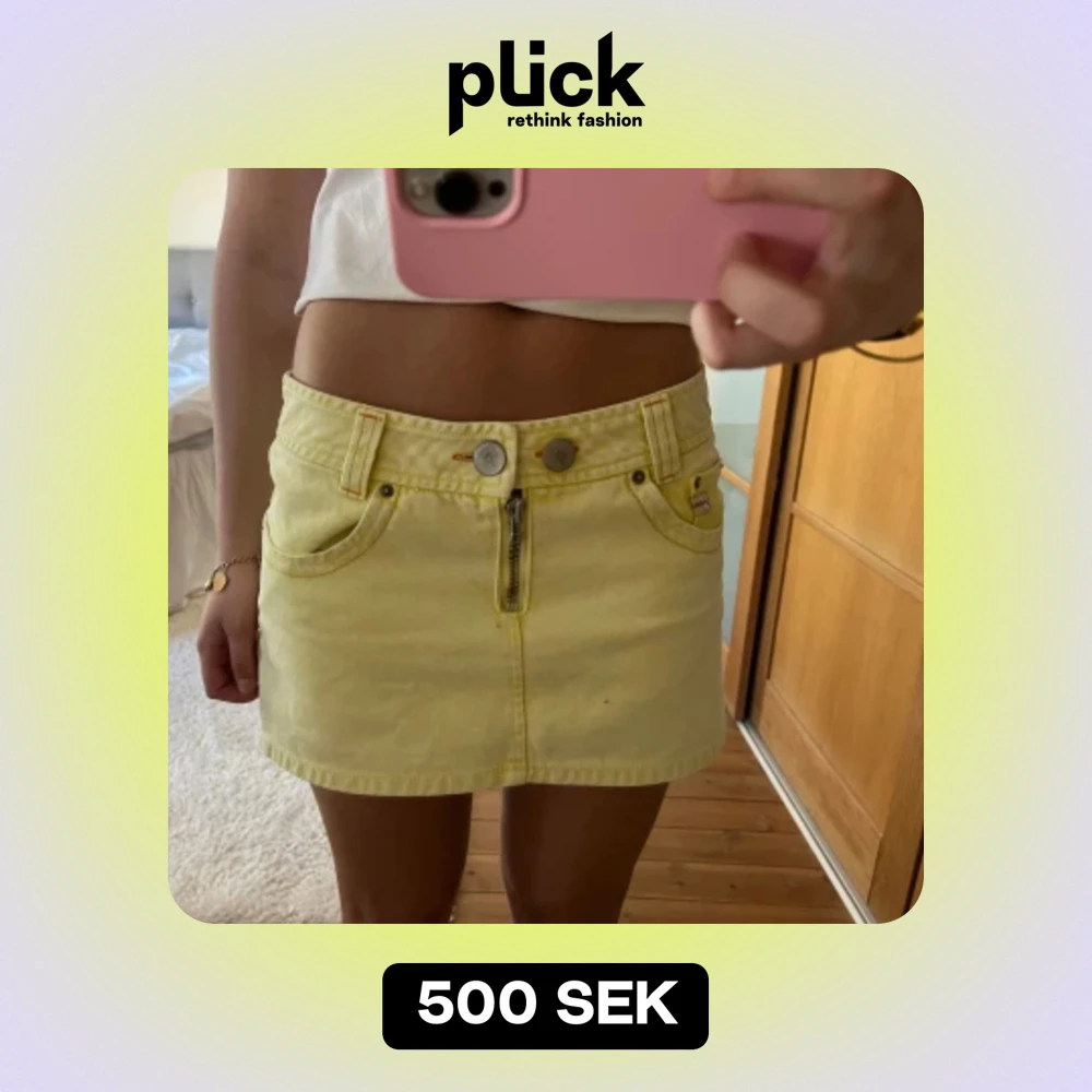Jättesöt lowwaist gul mini kjol perfekt till sommaren. Justerbar då den har två knappar. Knappen längst ut 40, knappen längst in 38, 31 i längd!💛Buda gärna!