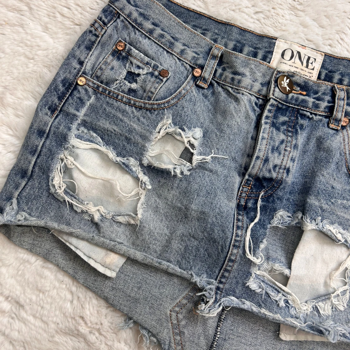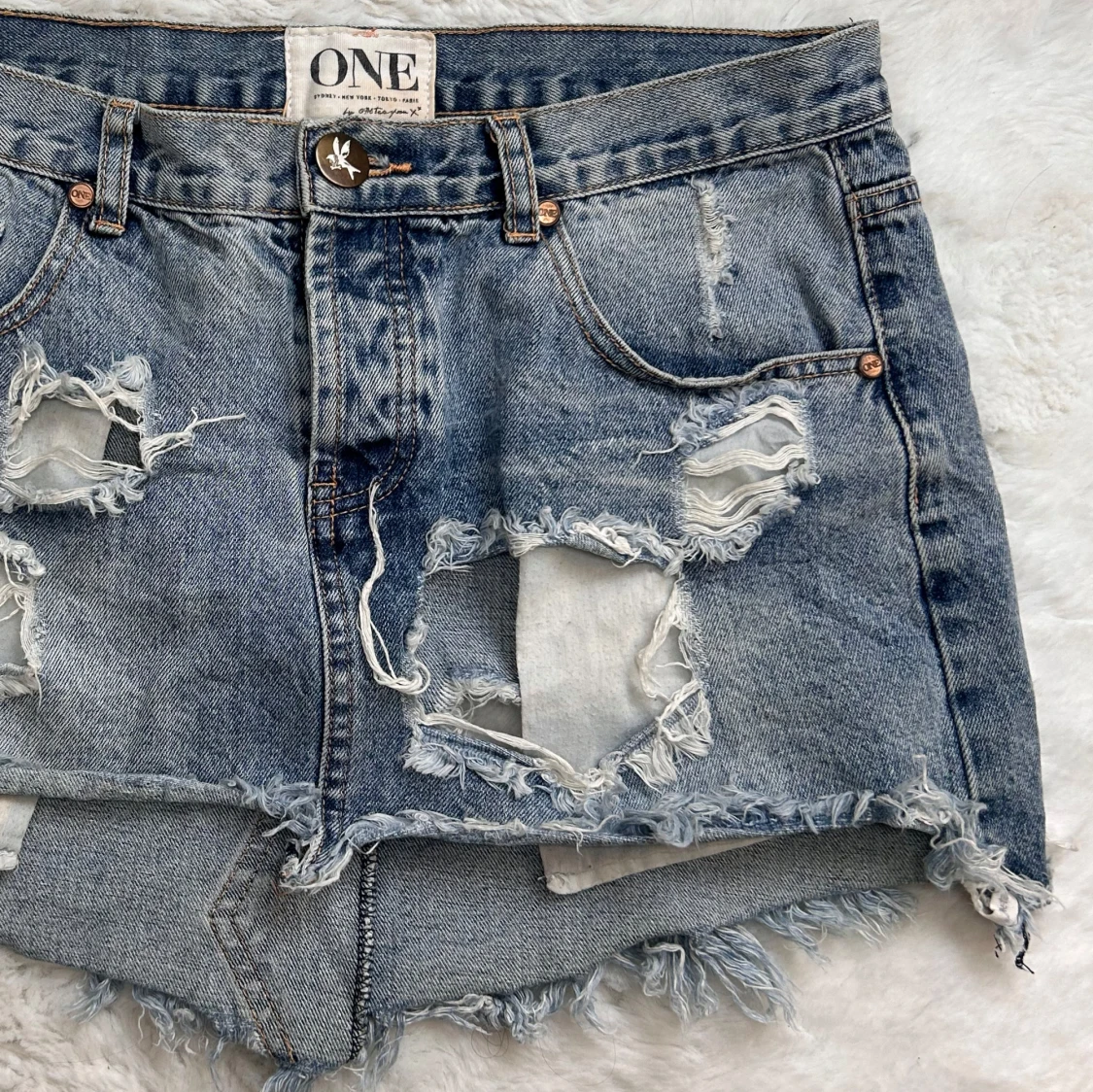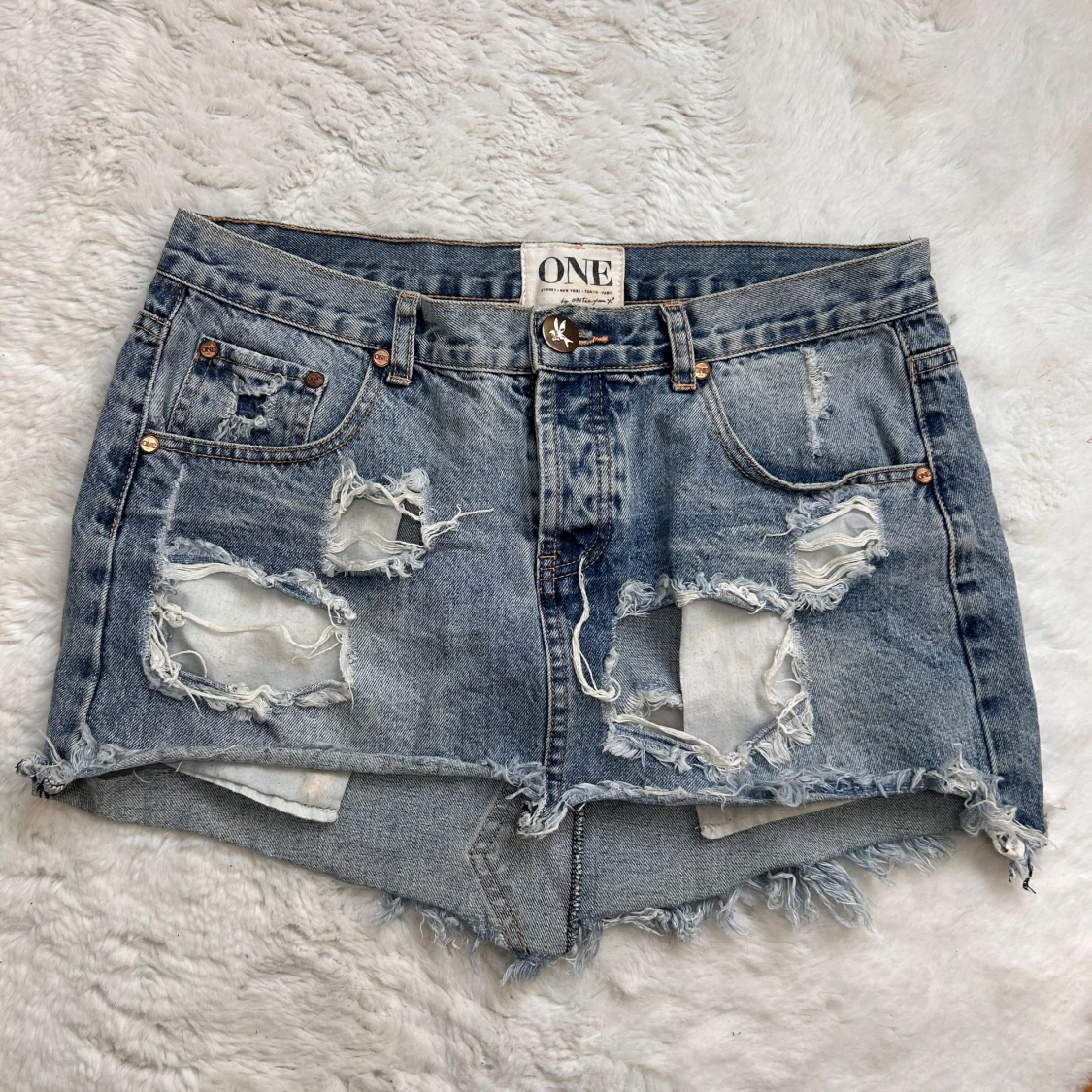 Lågmidjad jeanskjol med hål one teaspoon minikjol