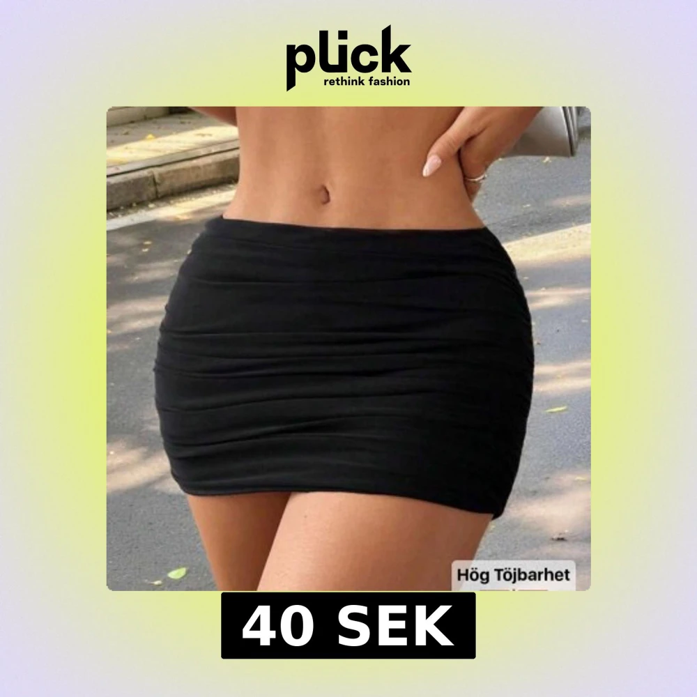 Supersnygg svart minikjol med tight passform och rynkade detaljer längs sidorna. Kjolen är stretchig och low waisted.