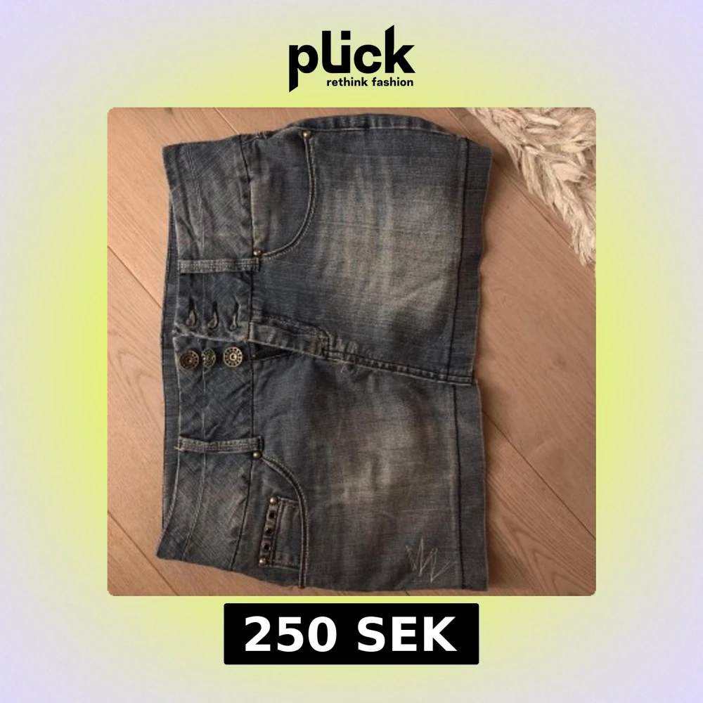 Snygg jeanskjol i blått med dekorativa knappar framtill och nitar på fickorna. Kjolen har en kort längd och är perfekt för en avslappnad stil. Den har också två bakfickor med nitar och en cool tvättad look.