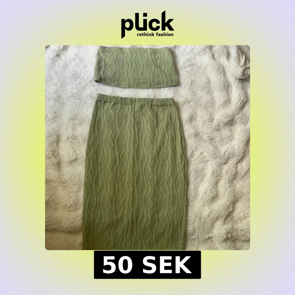 Säljer en olivgrön långkjol med snyggt strukturmönster i vågiga linjer. Kjolen har en rak passform och resår i midjan för extra komfort. Materialet känns mjukt och stretchigt, perfekt för en trendig och avslappnad look. ( TOPP INGGÅR)