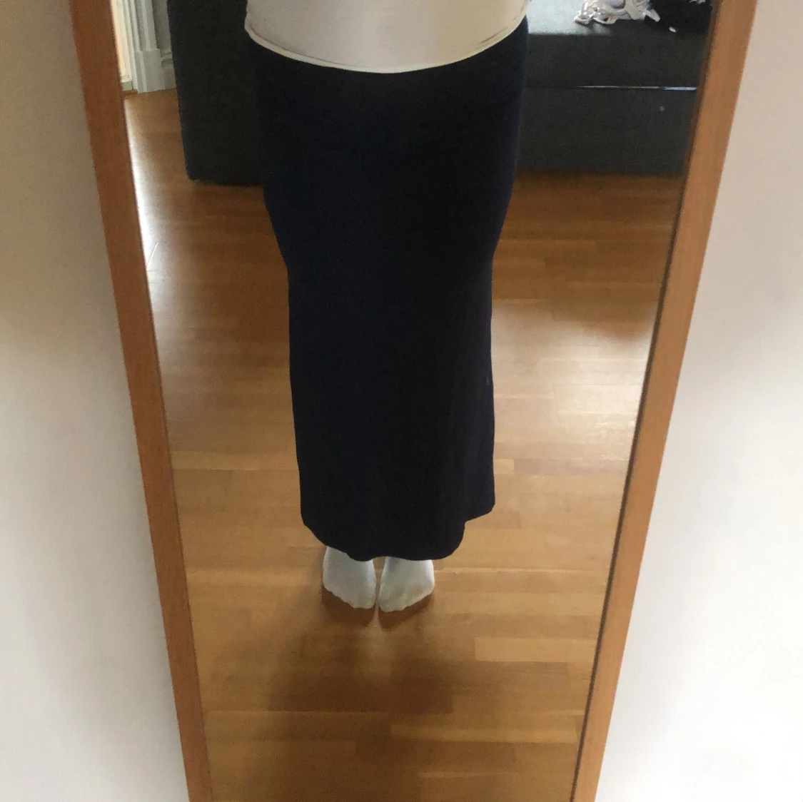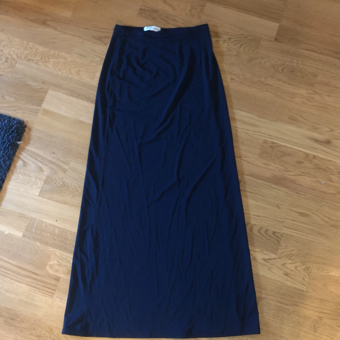 Snygg mörkblå långkjol från Charlotte & Morgan. Kjolen har en elegant och enkel design som passar perfekt för olika tillfällen. Den är gjord i ett mjukt och bekvämt material som ger en skön passform. Perfekt för dig som vill ha en stilren look. Den är i storlek M men passar även en S❤️❤️