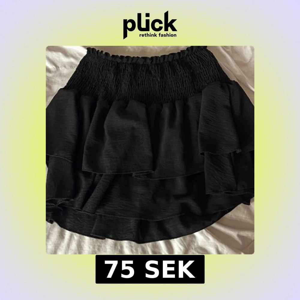 Supersöt svart kjol med flera lager volanger och bred smock i midjan. Kjolen är kort och har en luftig känsla, väldigt bra kjol inför sommaren.