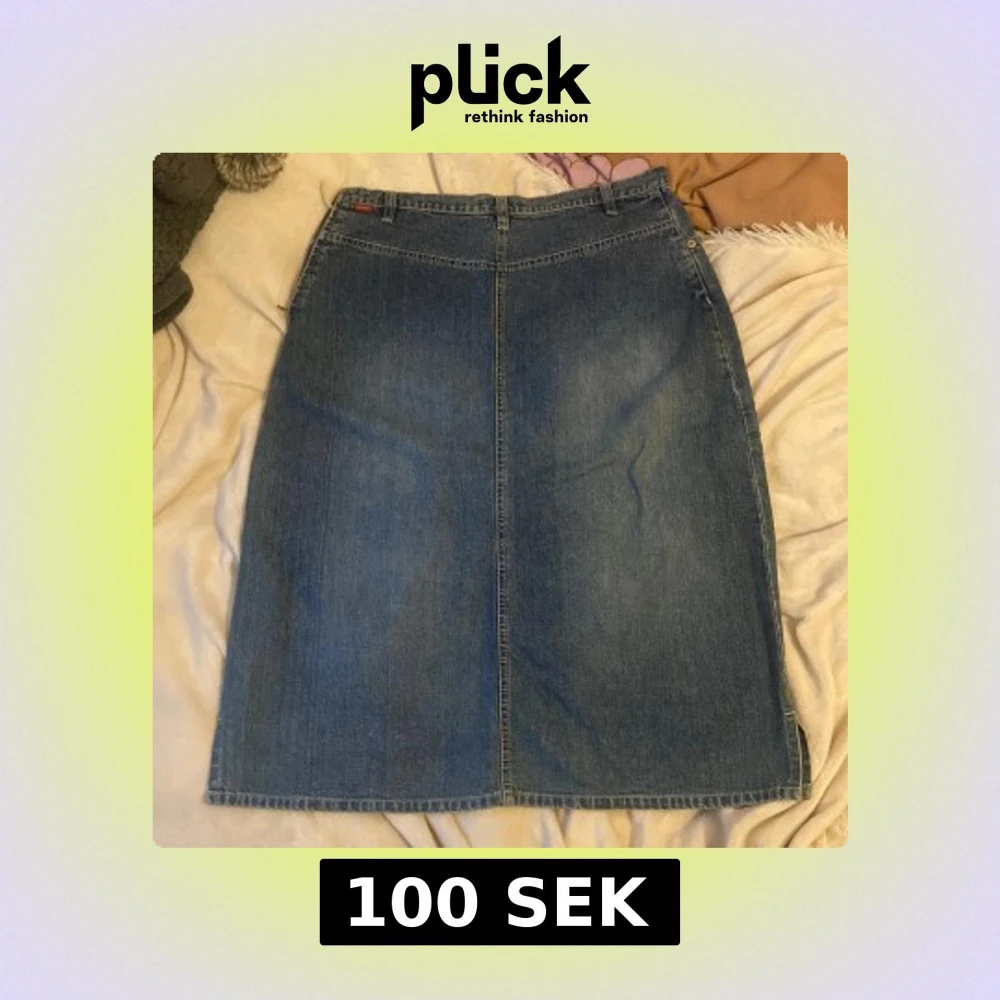 Supersnygg jeansmidikjol som aldrig används längre för jag har 2 :( står bara storlek 3 men jag skulle säga M om man har den mer högmidjat och S om man har den mer lågmidjat kanske!