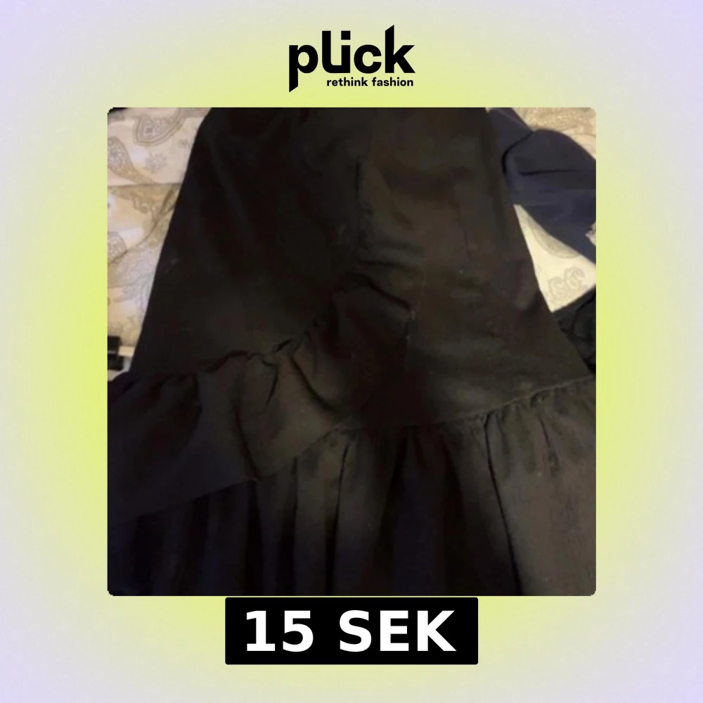 Snygg svart klänning med volangdetaljer nertill. Klänningen har en enkel och stilren design som gör den lätt att matcha med accessoarer. Perfekt för dig som gillar en klassisk look med en twist.