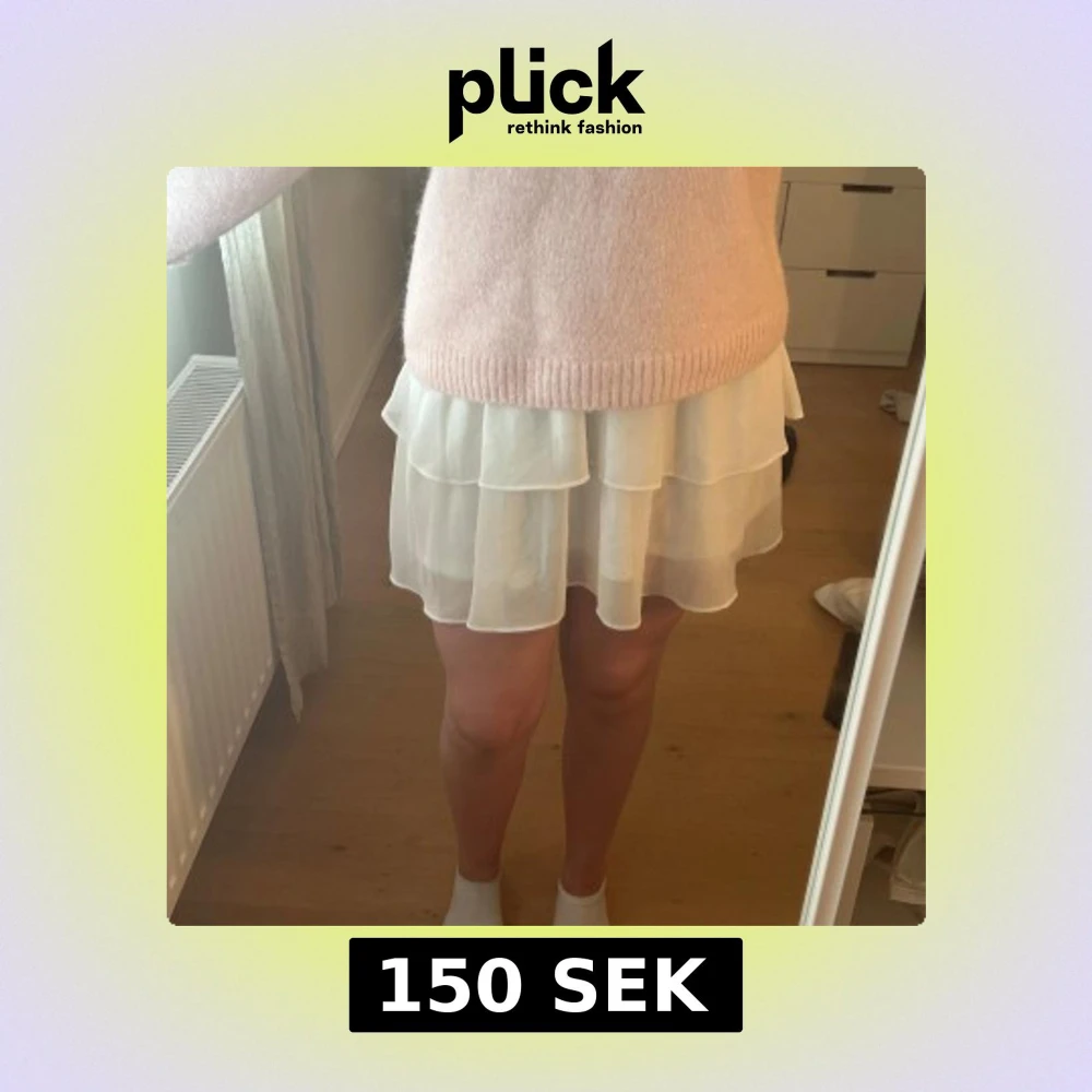 Super fin vit volangkjol, passar perfekt till sommaren! Den är tajt i midjan och sitter lösare ner till. Säljer då det inte riktigt är min stil. Storlek M. Pris kan diskuteras ❤️
