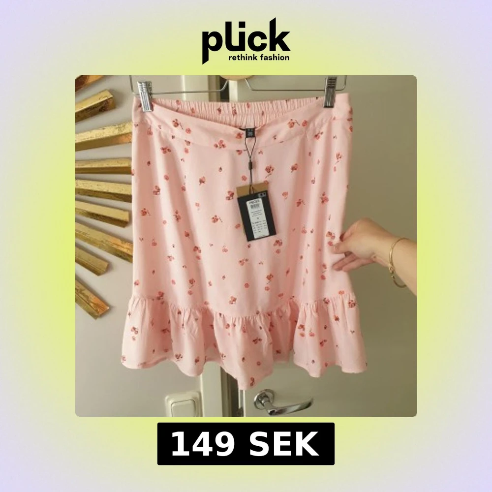 Jättefin rosa kjol med små blommor och jordgubbar. Helt ny med lappen kvar.