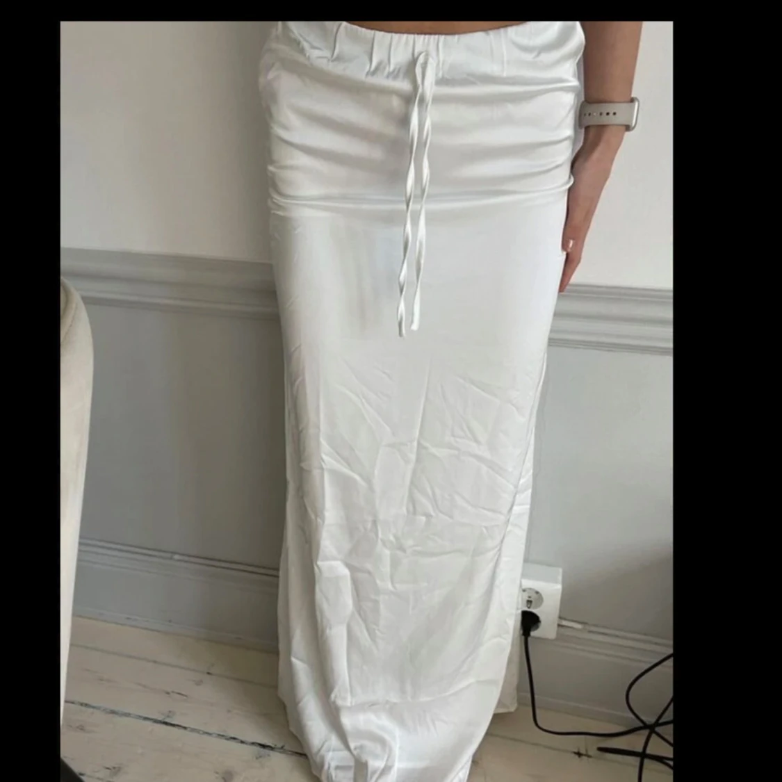 Väldigt vacker satinkjol som tyvärr sitter alldeles för tight på mig:( Har inget dåligt att säga om denna kjolen, den är helt otroligt fin! Den har resårband i midjan, samt en liten dragkedja i sidan:) Den går ner i marken på mig som är 170 cm. Storlek M men passar S också!