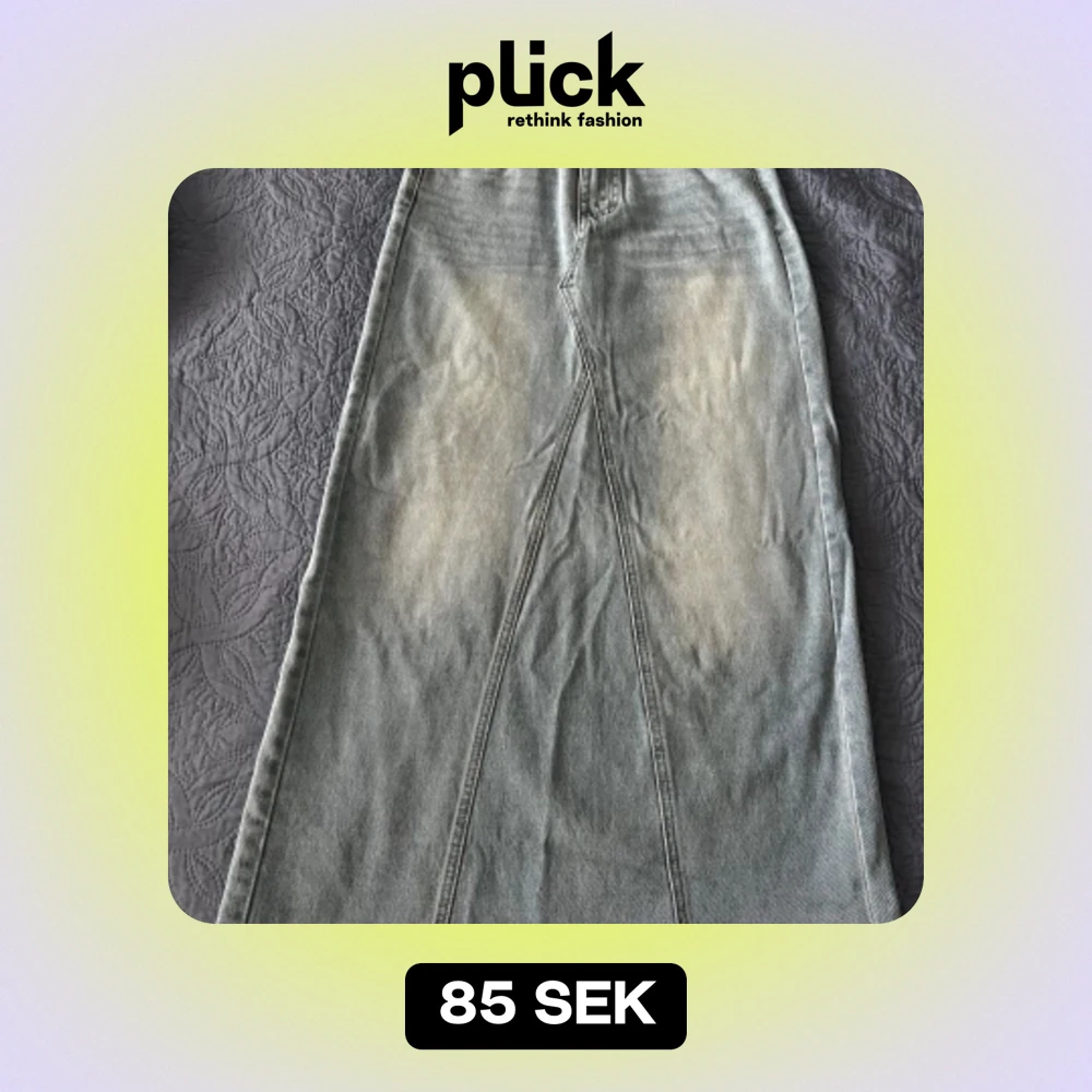 Jeans kjol använt en gång bara och slutade använda den för tyckte längden passade inte mig är 170cm och den är exakt min längd men jag gillar alltid att min kläder ska vara större/ längre. Från shein storlek M. Ny pris 250kr