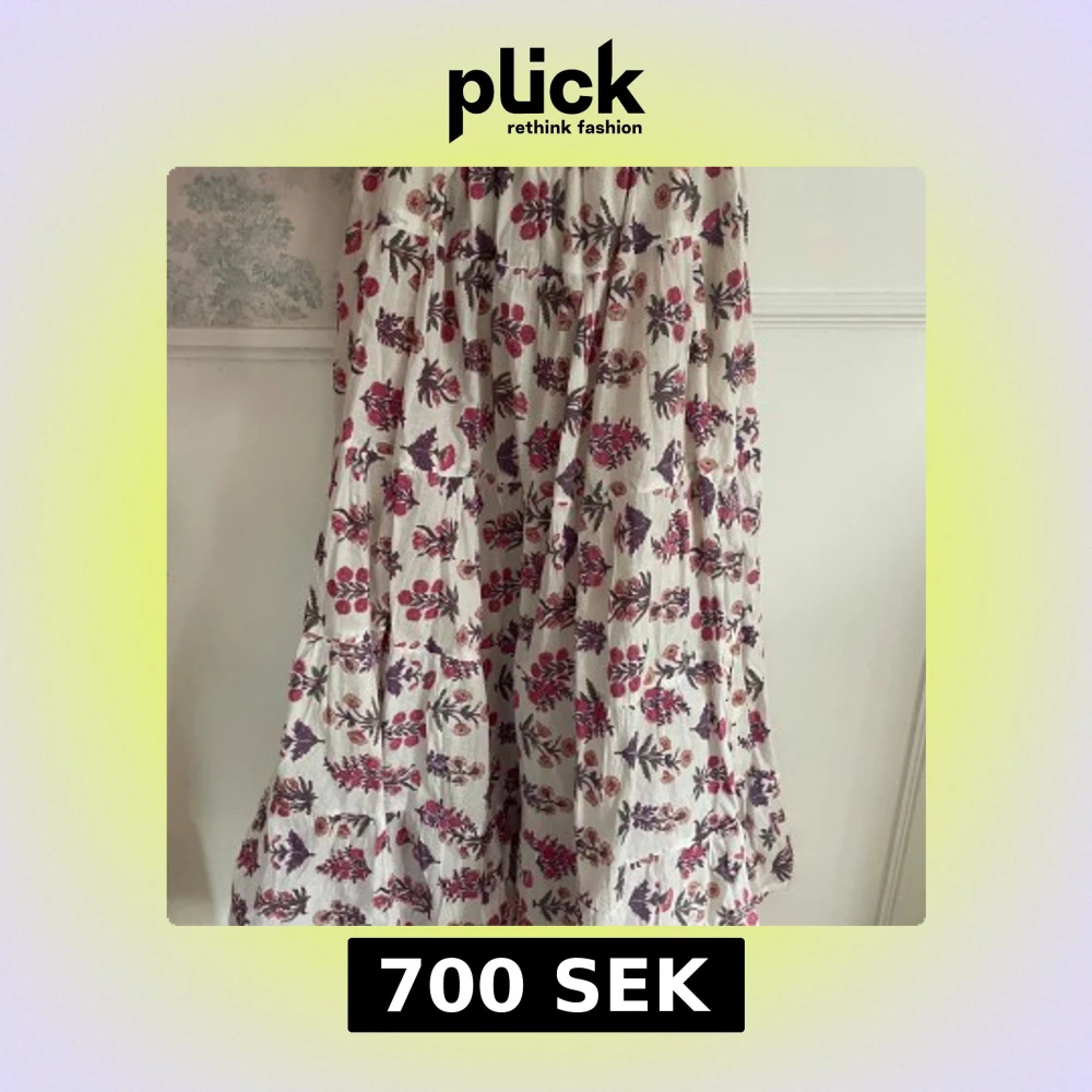 Charmig långkjol med ett vackert blommönster i rött och lila på en vit bakgrund. Kjolen är tillverkad i bomull och har en luftig och bekväm passform, perfekt för varma dagar. Helt ny och köpt i Australien