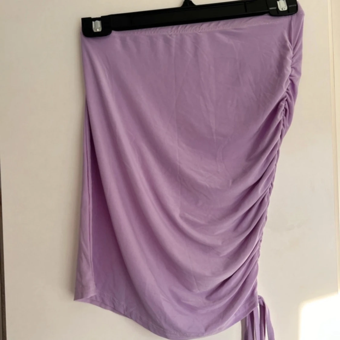 Snygg ljuslila kjol med drapering på sidan som ger en fin detalj. Kjolen har en mjuk och följsam passform, perfekt för en stilren look. Den är gjord i ett lätt material som faller fint. Tillhörande linne med.