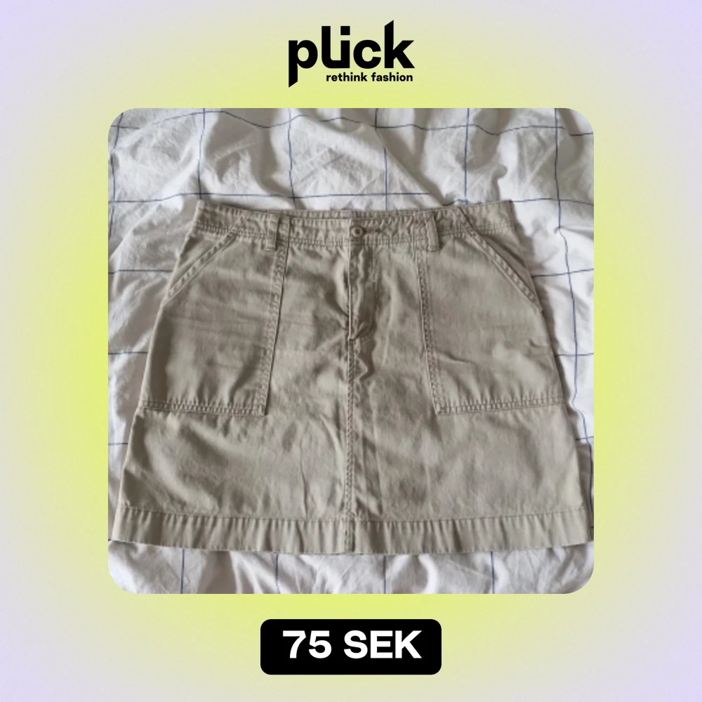En beige kjol från M52 Pants med två framfickor och två bakfickor. Kjolen har en knapp och dragkedja framtill samt bälteshällor. Min mammas gamla kjol vet inte exakt hur gammal den är men skulle gissa runt 25-30 år, även fast att den är så gammal finns det inga tecken pä användning. Det är en normalmidjad kjol som går ner till knäna på mig (160cm). Slriv för fler specifiserade bilder 🤗