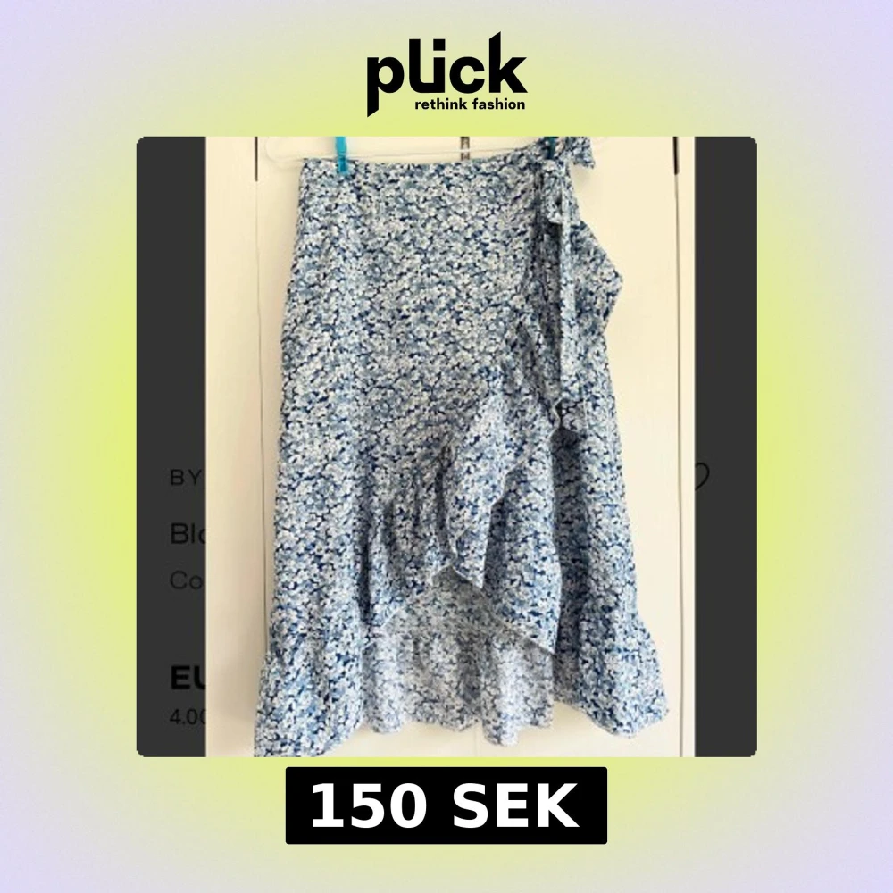 Supersöt blå omlottkjol med vitt blommönster och volangkant. Kjolen har knyt i sidan och en lätt vågig form, super fin på sommaren och passar till allt🩵🌸✨ HELT NY OCH OANVÄND
