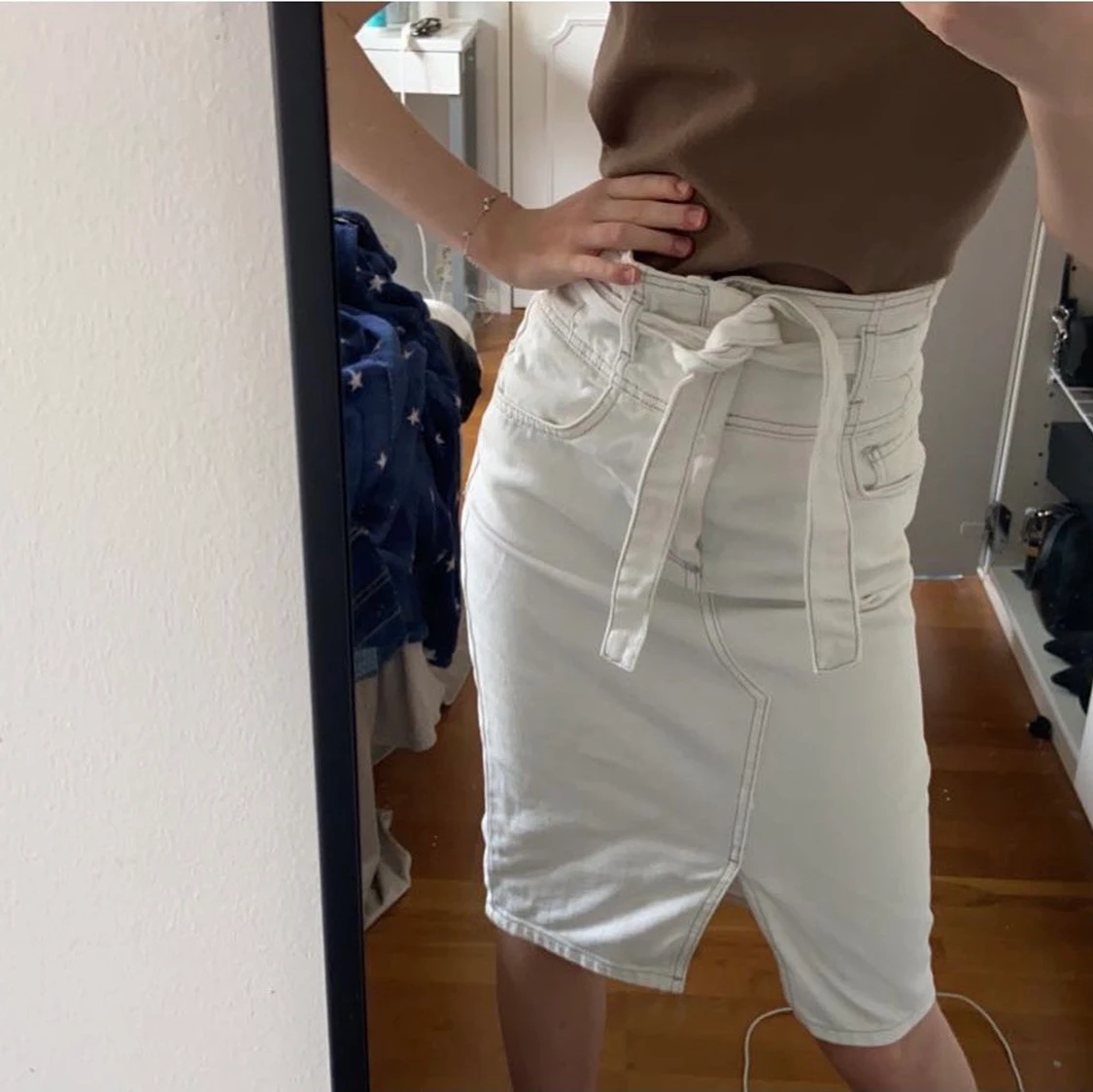 Vit jeans kjol med skärp. 140kr med frakt inkluderad